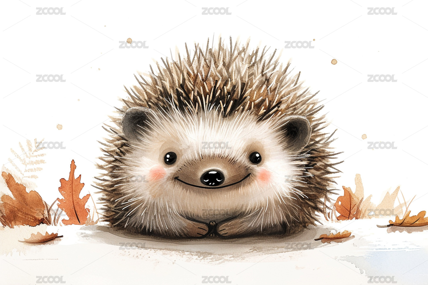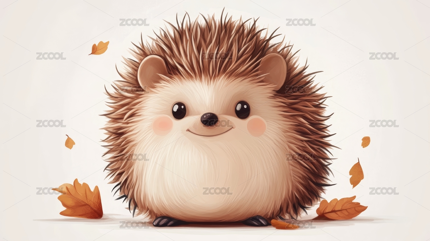 刺猬,卡通,可爱,微笑,叶子,棕色,白色,背景