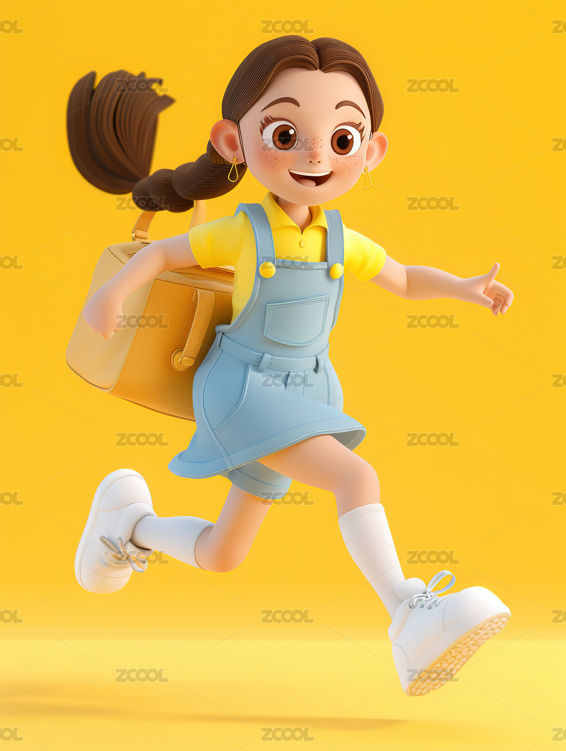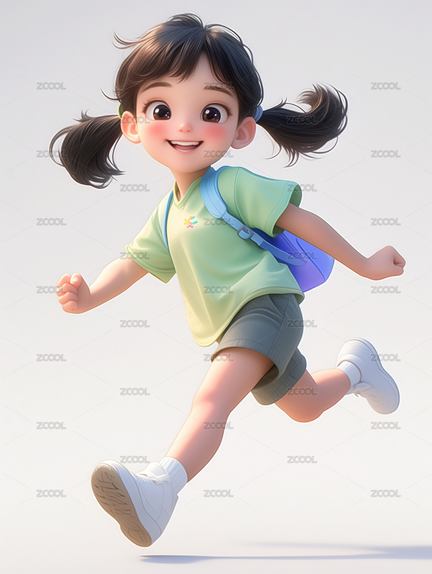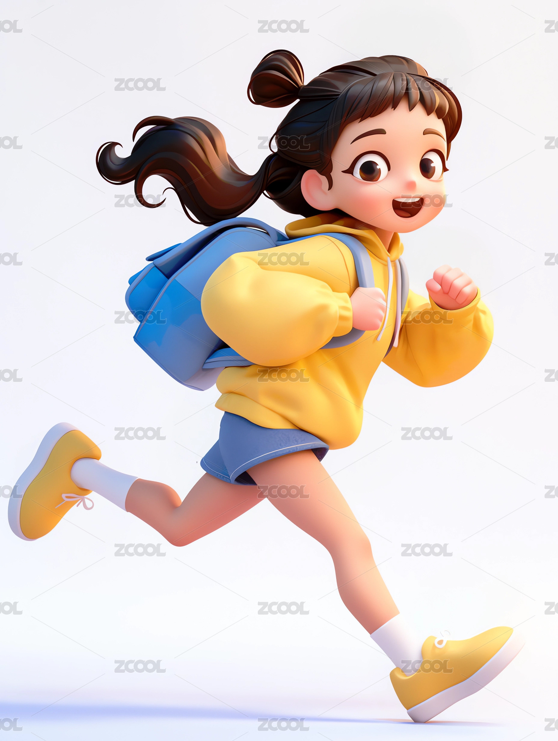 三维,女孩,奔跑,书包,跃动,双肩,天蓝,建模,疾跑,跨步