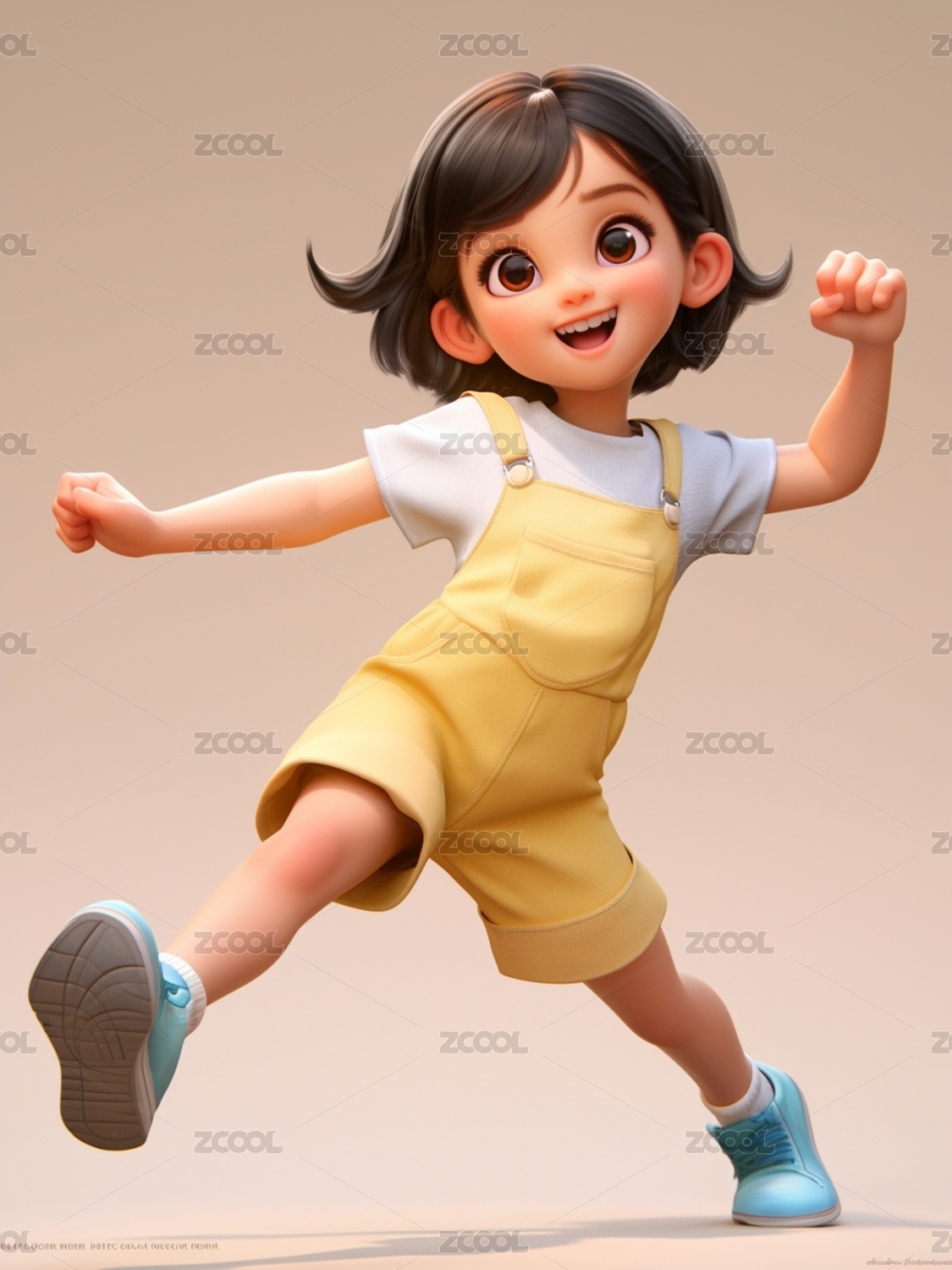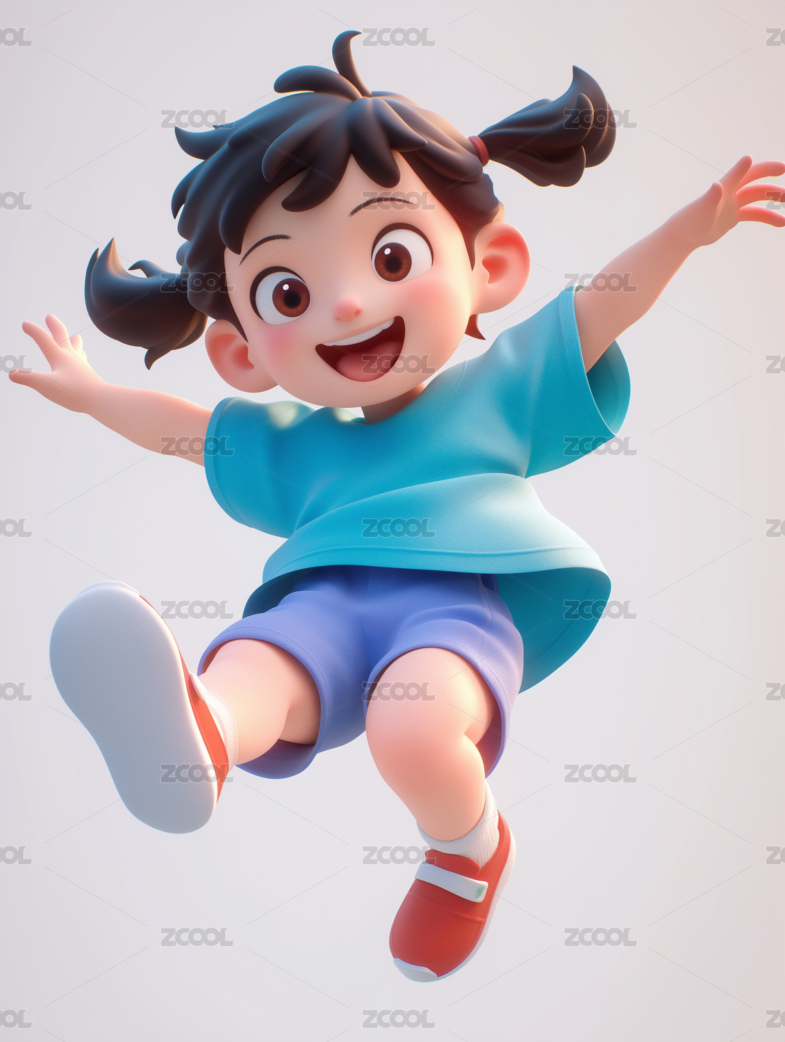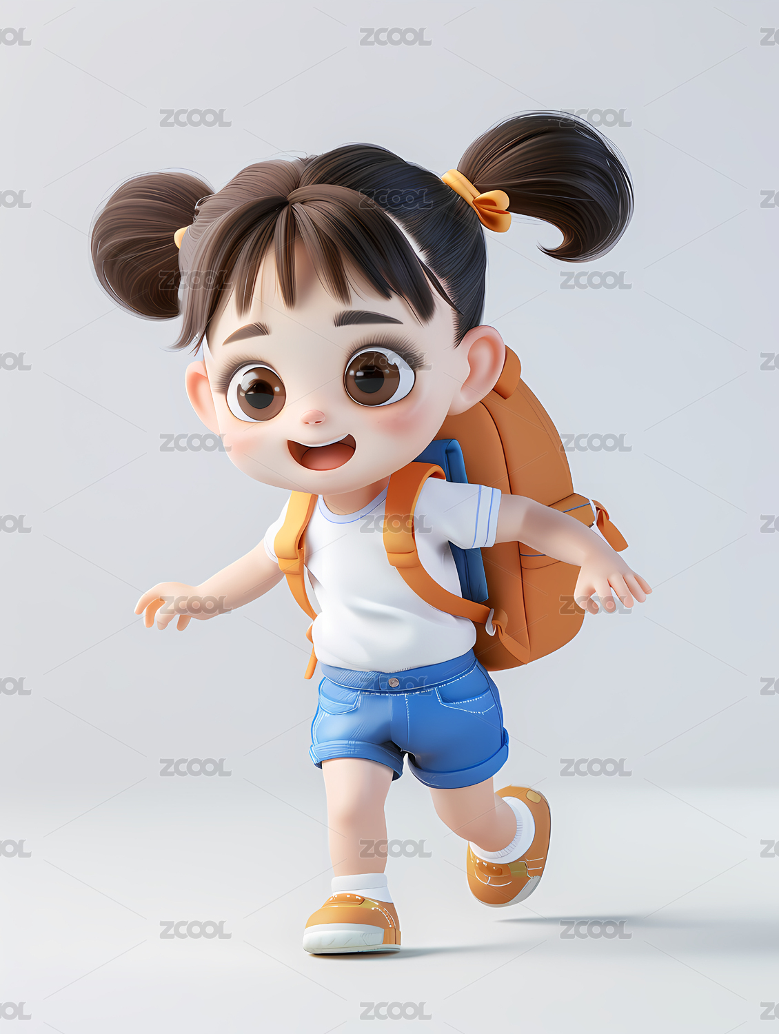 三维,女孩,奔跑,书包,跃动,双肩,天蓝,建模,疾跑,跨步