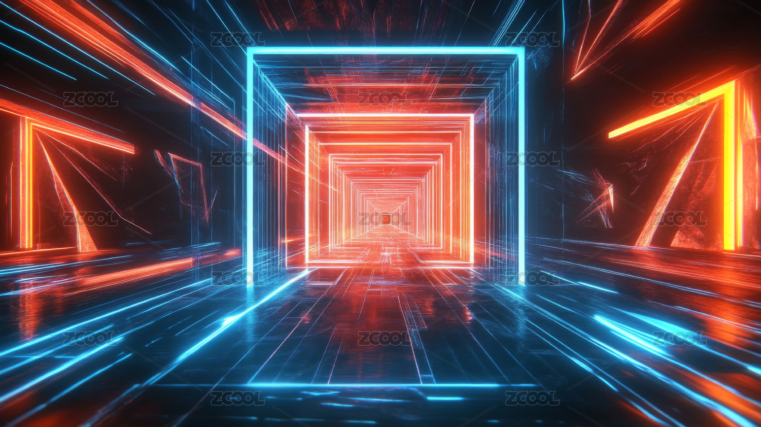 3D渲染科幻延伸蓝色未来科技感空间场景