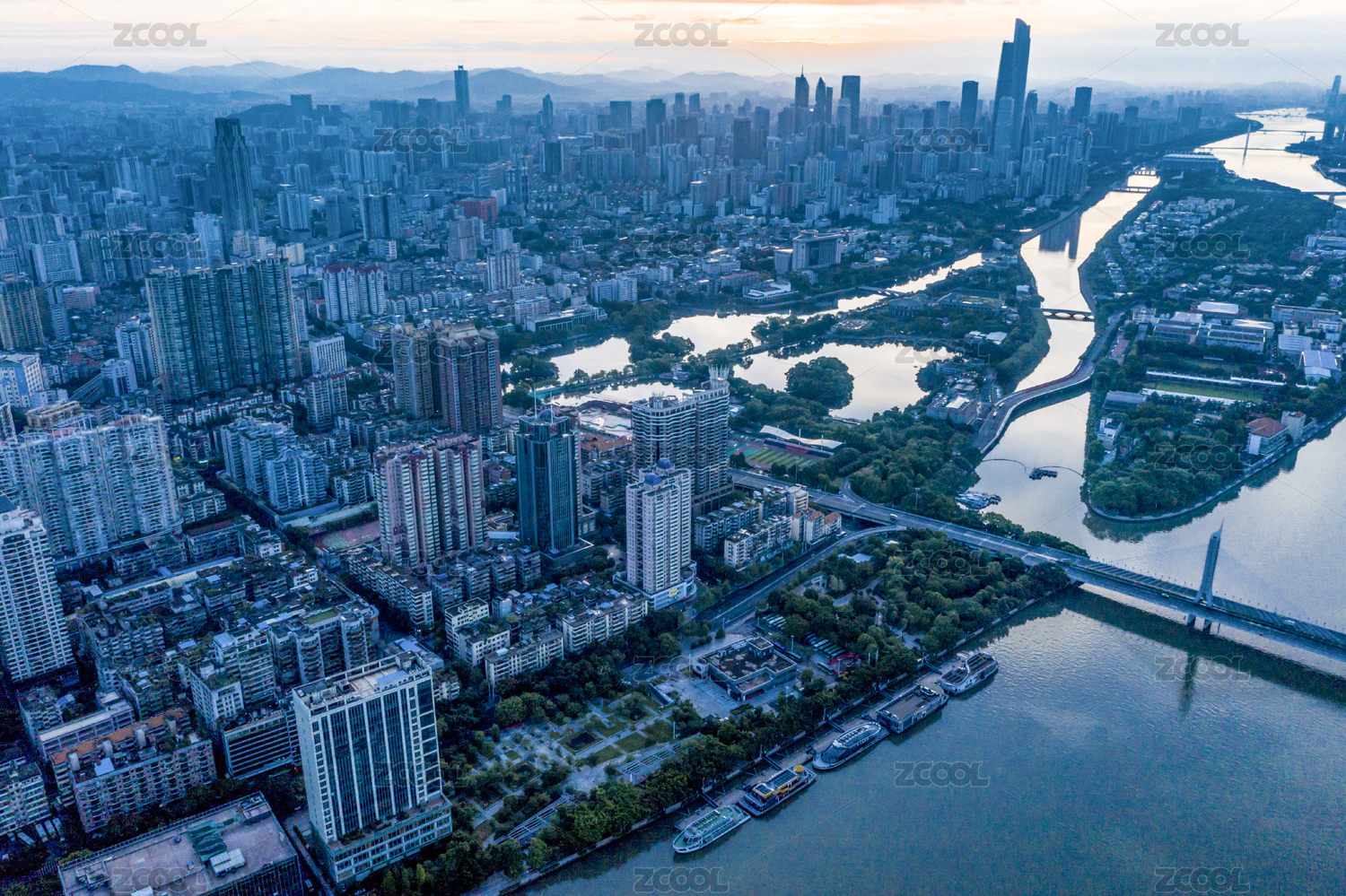 航拍福建福州中洲岛及解放大桥欧式建筑岛屿