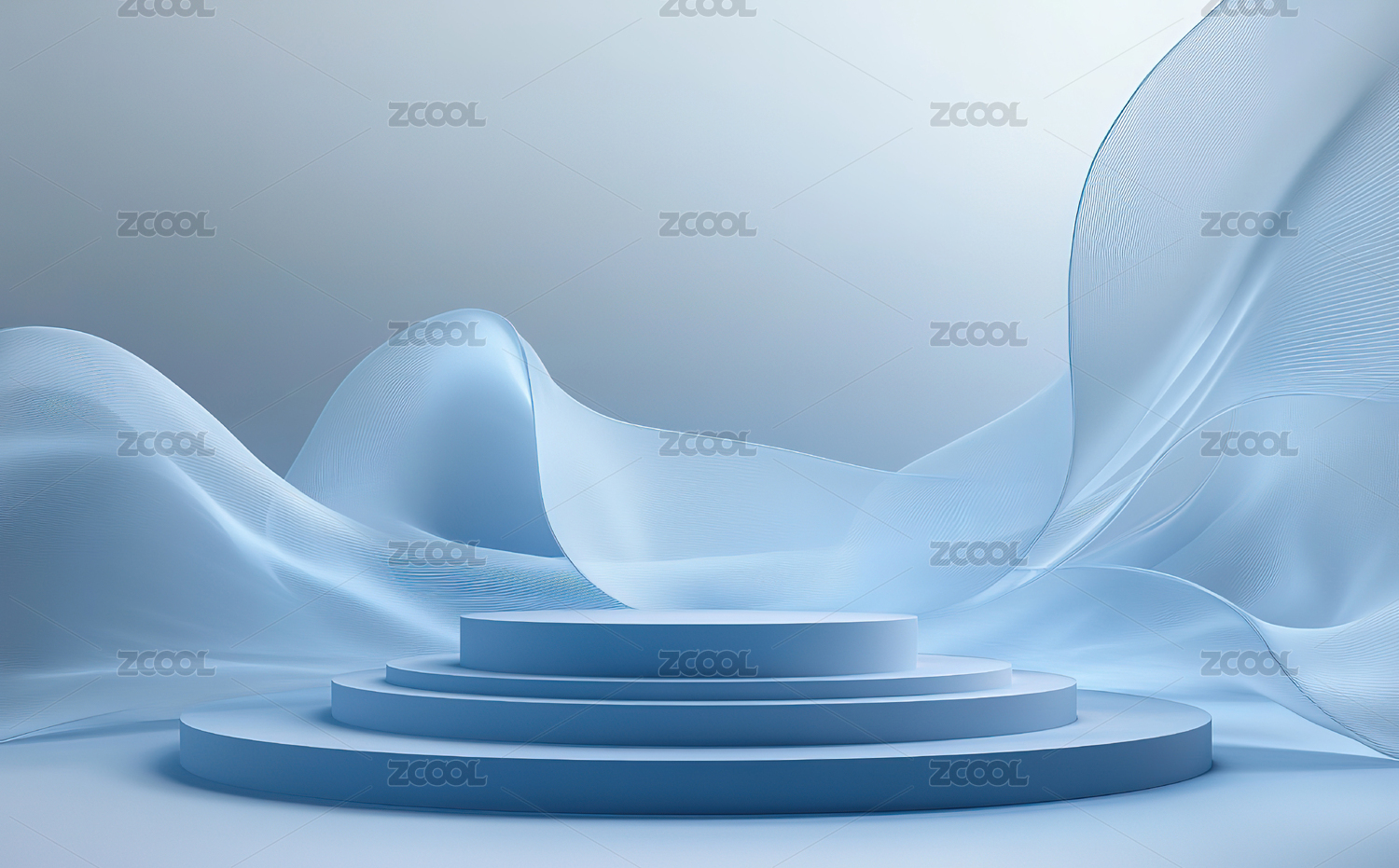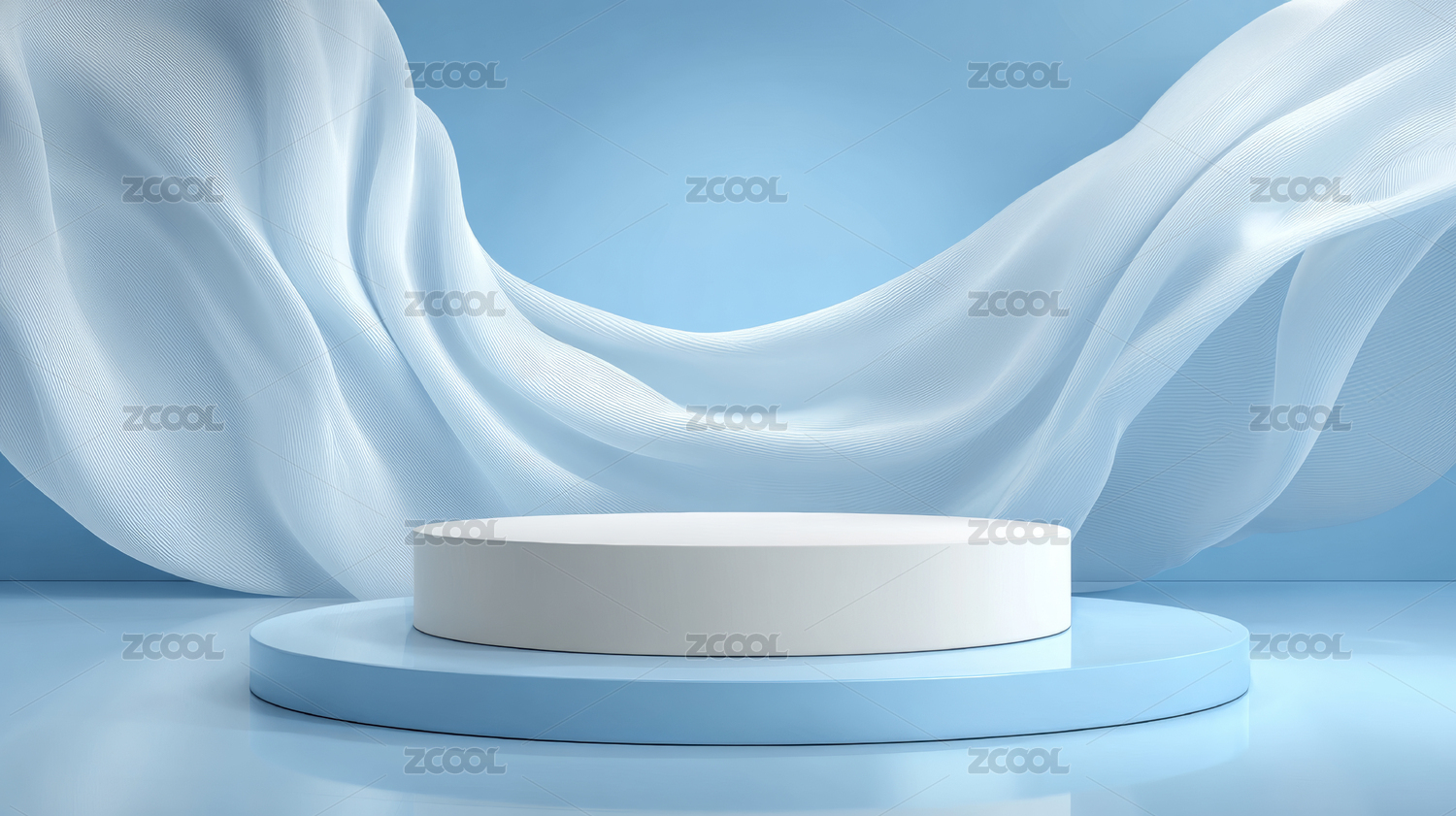 蓝色背景圆台布料飘动