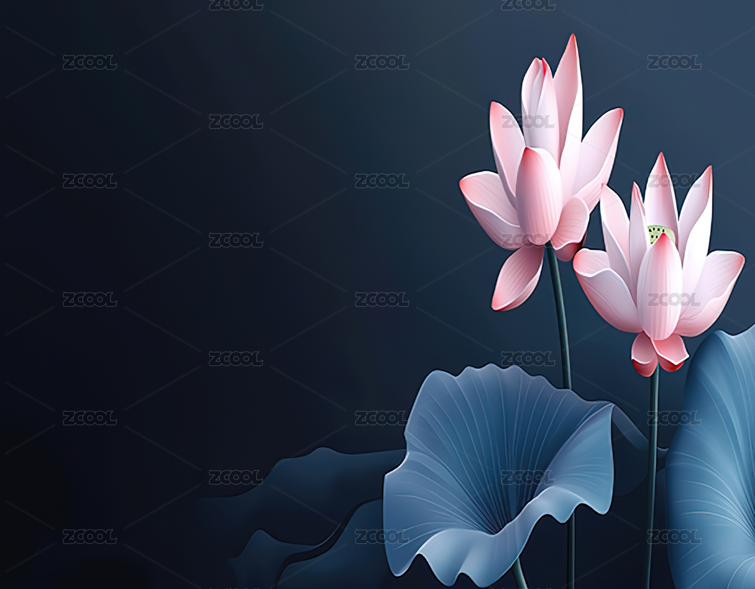 金箔莲花蓝色背景高清壁纸