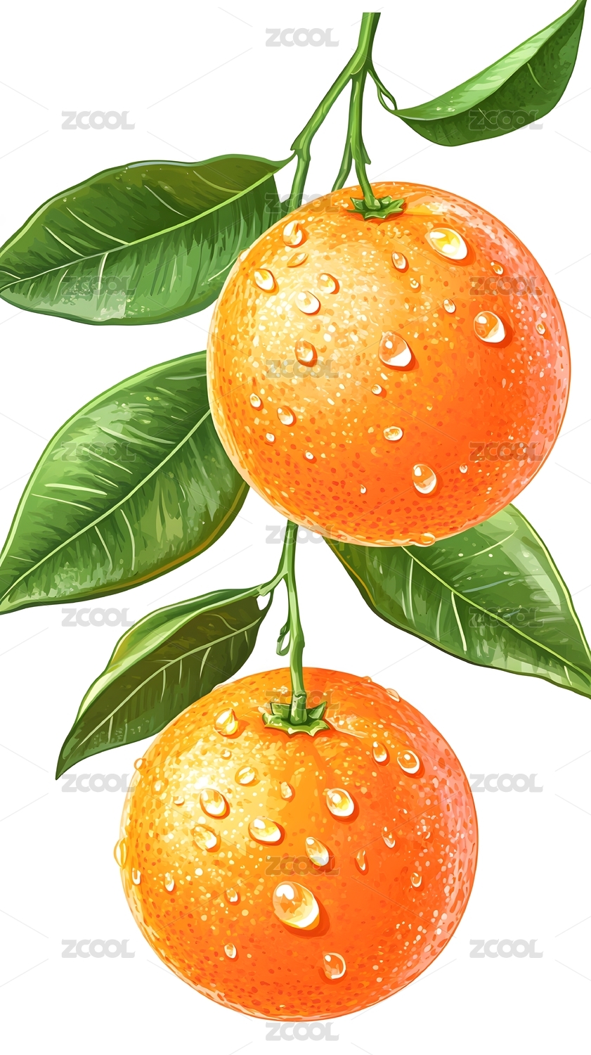 柑橘树枝矢量插画元素