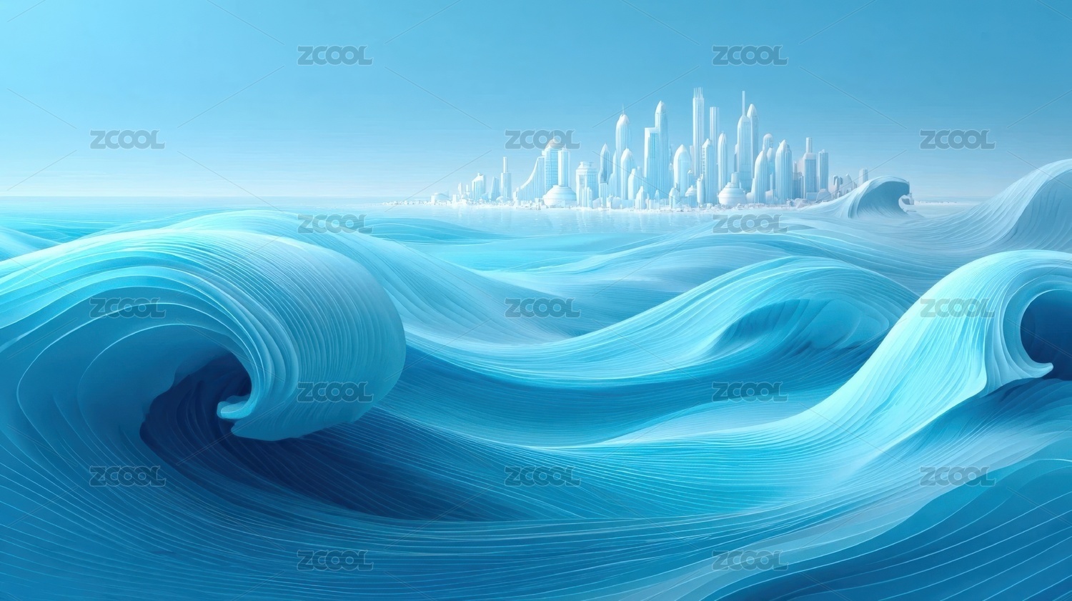 梦幻,蓝色,巨浪,翻滚,海洋,波浪,水花,天空,自然,景色