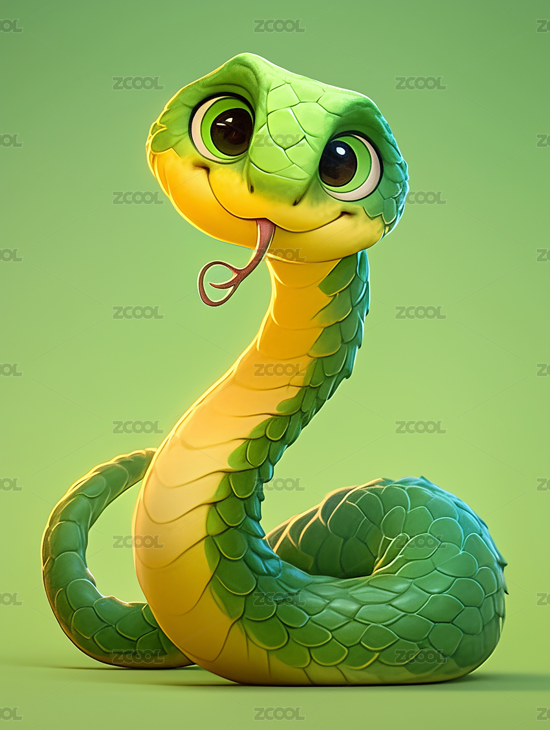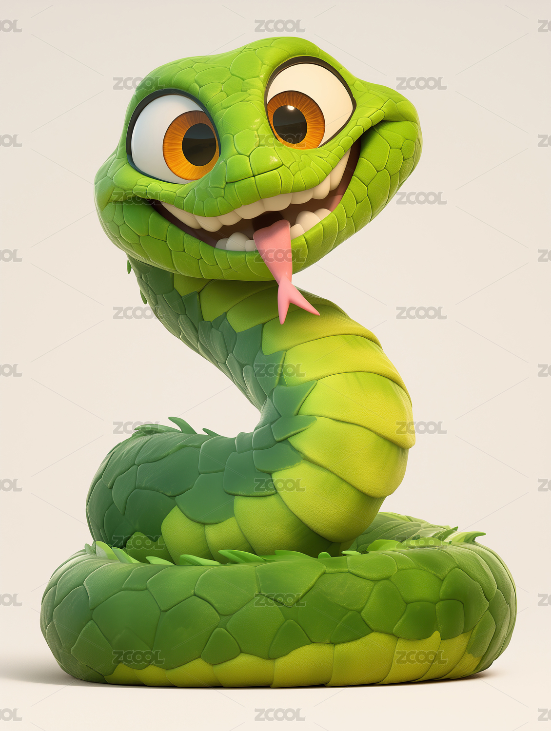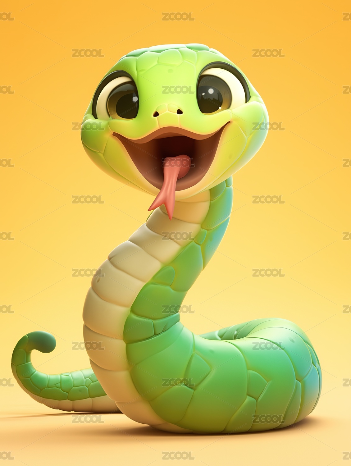 卡通,蛇,可爱,绿色,黄色,大眼睛,微笑,3D,渲染
