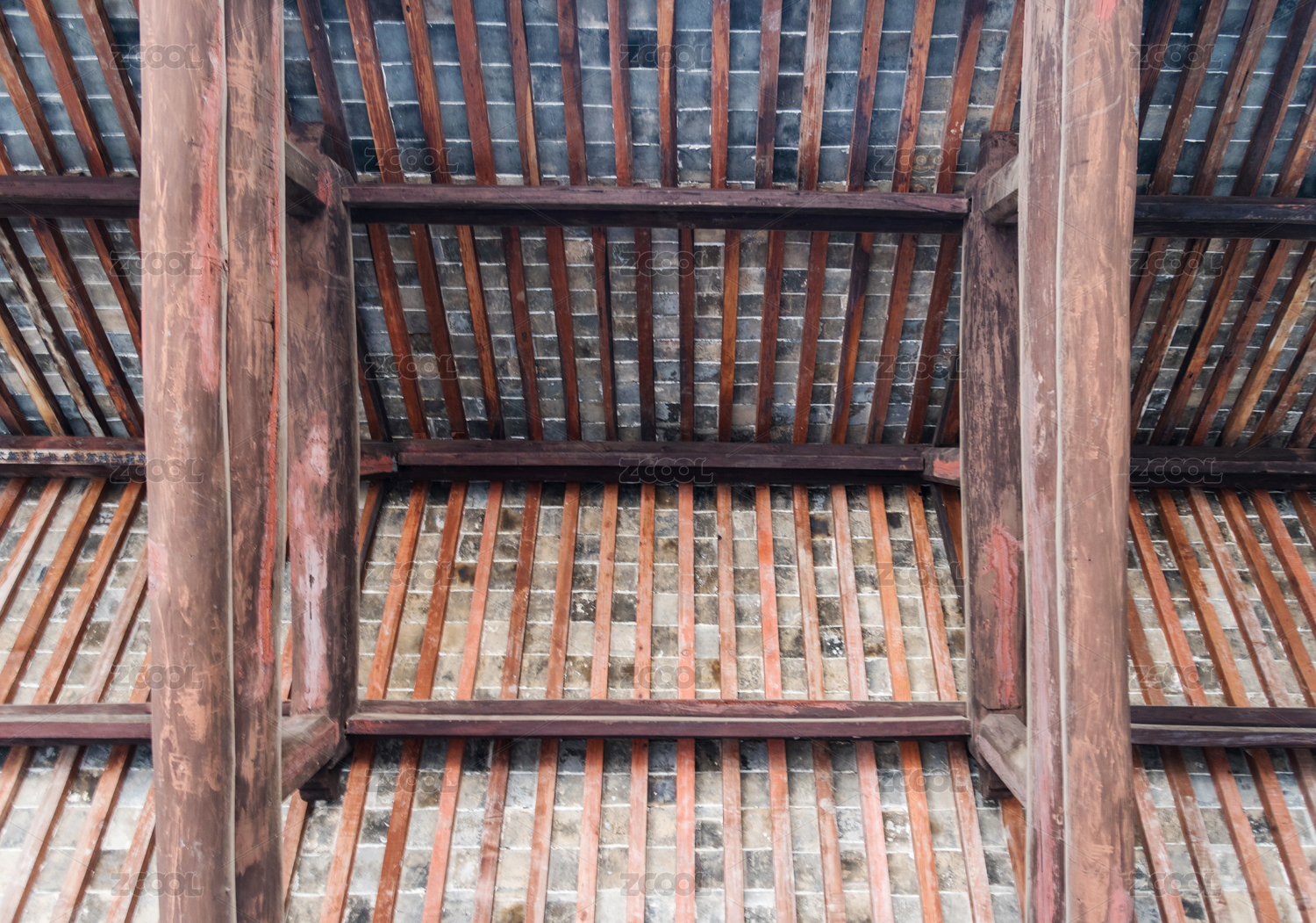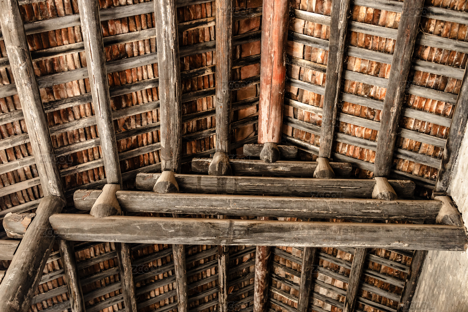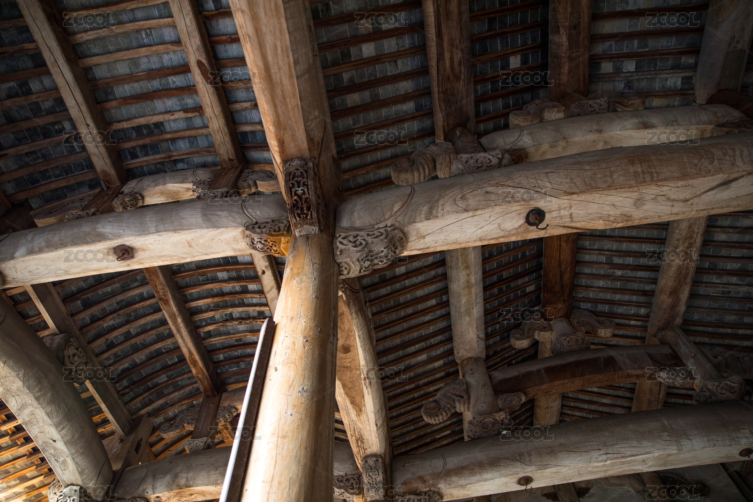 古建筑房屋的屋顶房梁特写