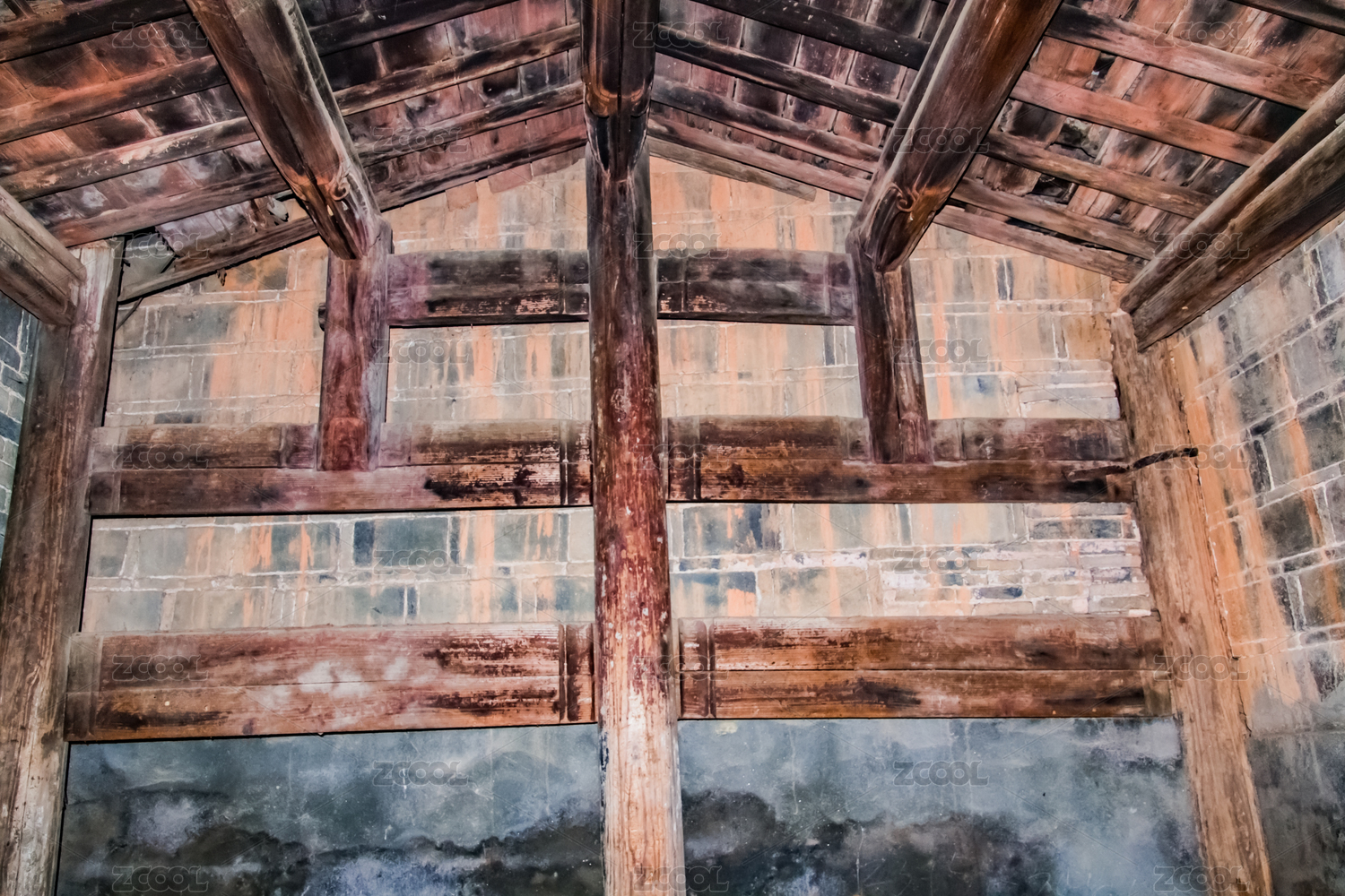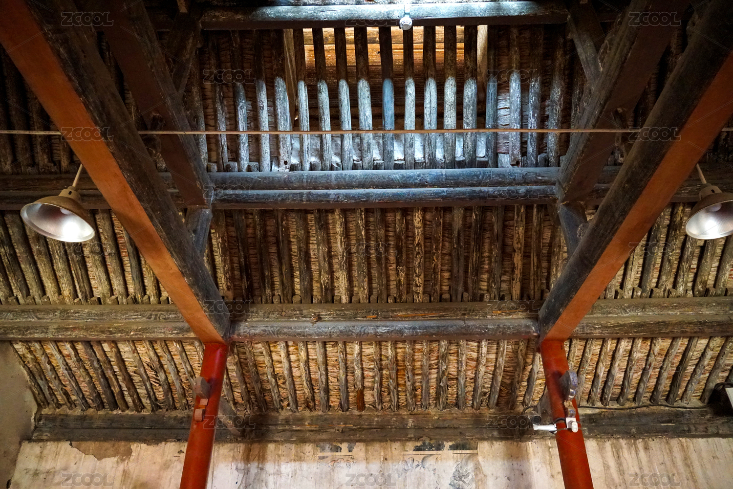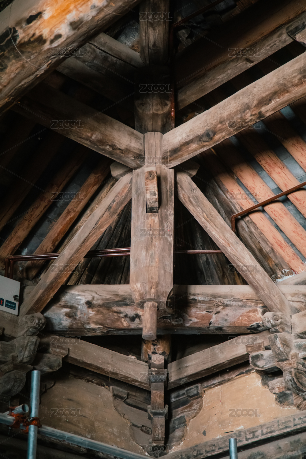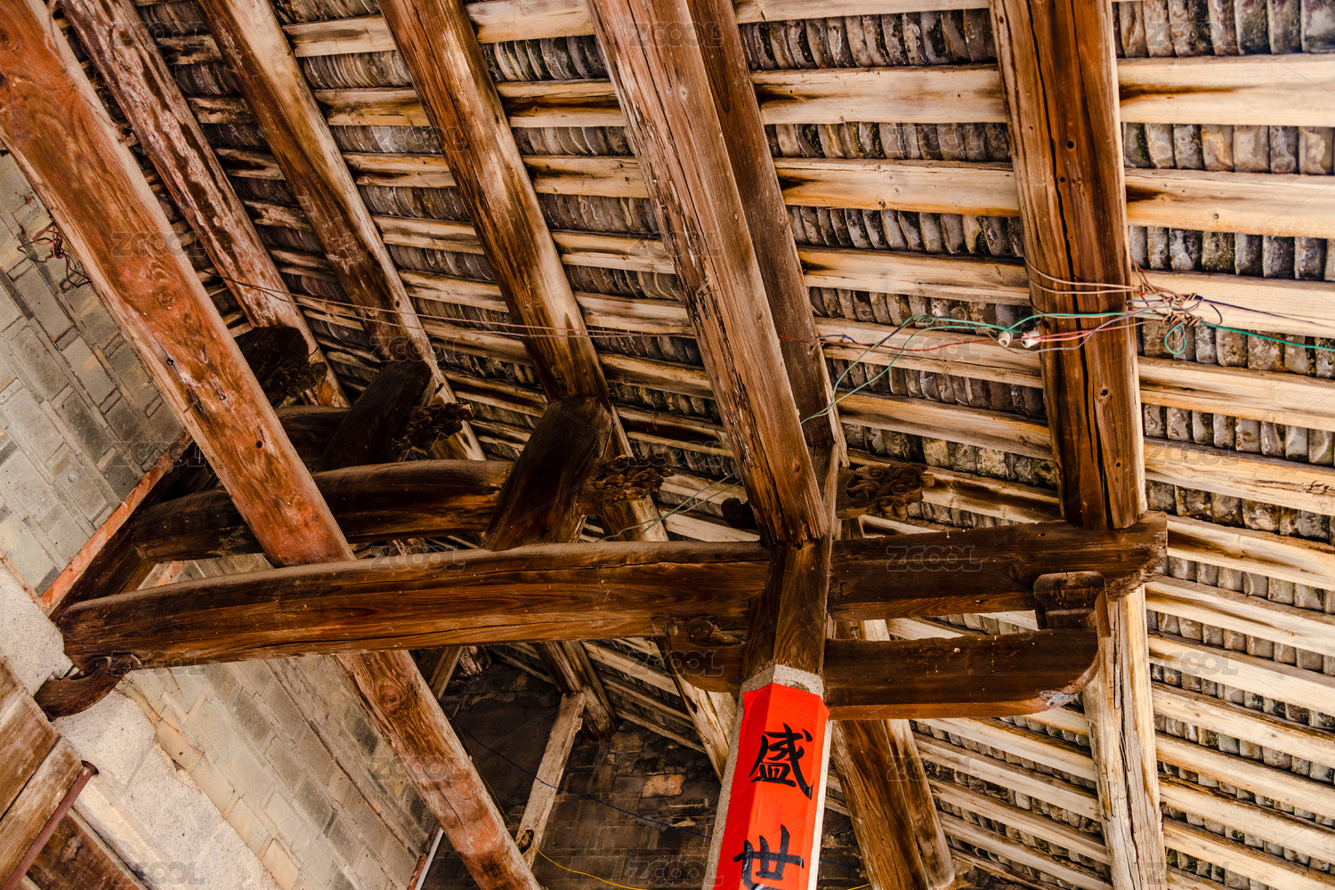 古建筑房屋的屋顶房梁特写