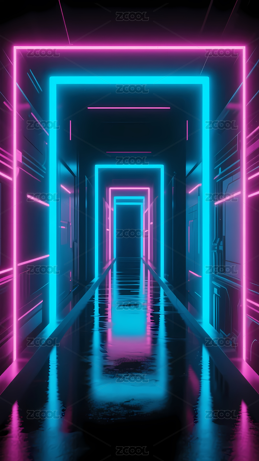 霓虹灯隧道的未来感空间
