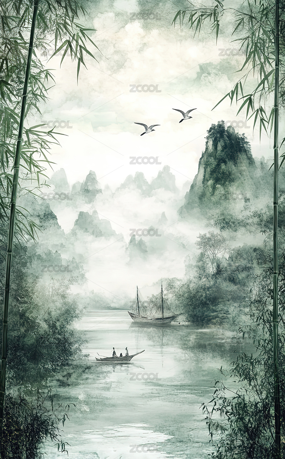 水墨,壁纸,插画,海报,中国风,古风,国画,风景,写意,商务