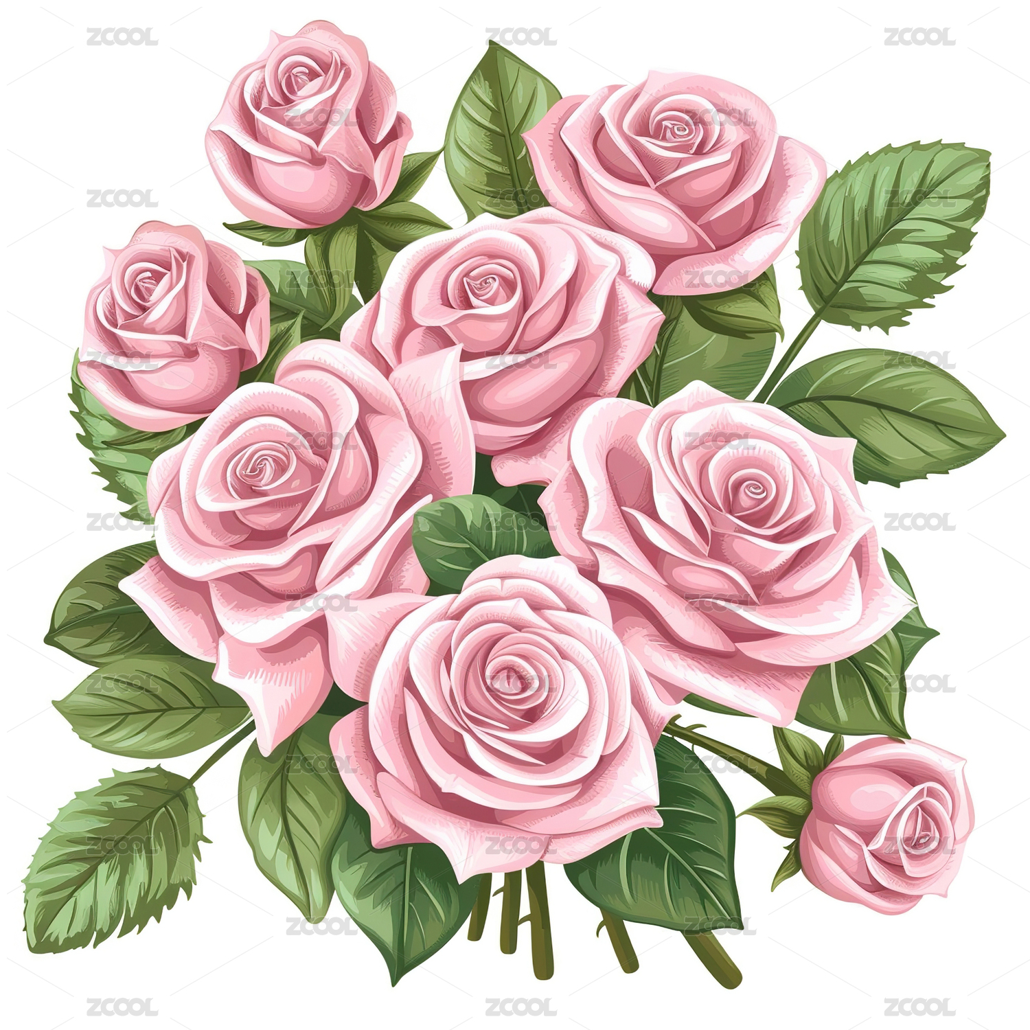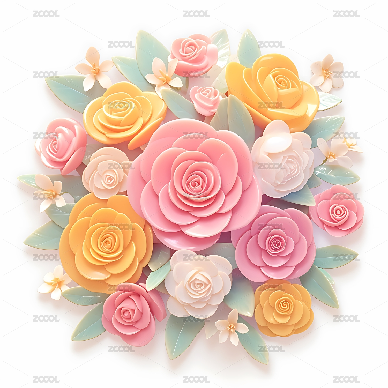 玫瑰花,花,3D,立体,纯色,插画,花朵,花束,色彩,元素