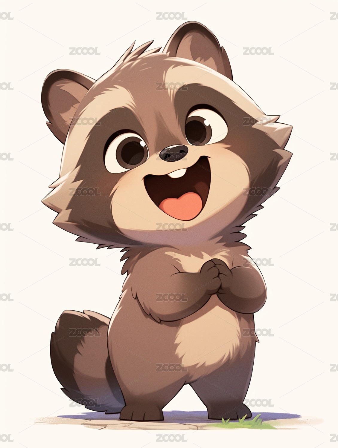 卡通,浣熊,可爱,插画,动物,微笑,毛茸茸