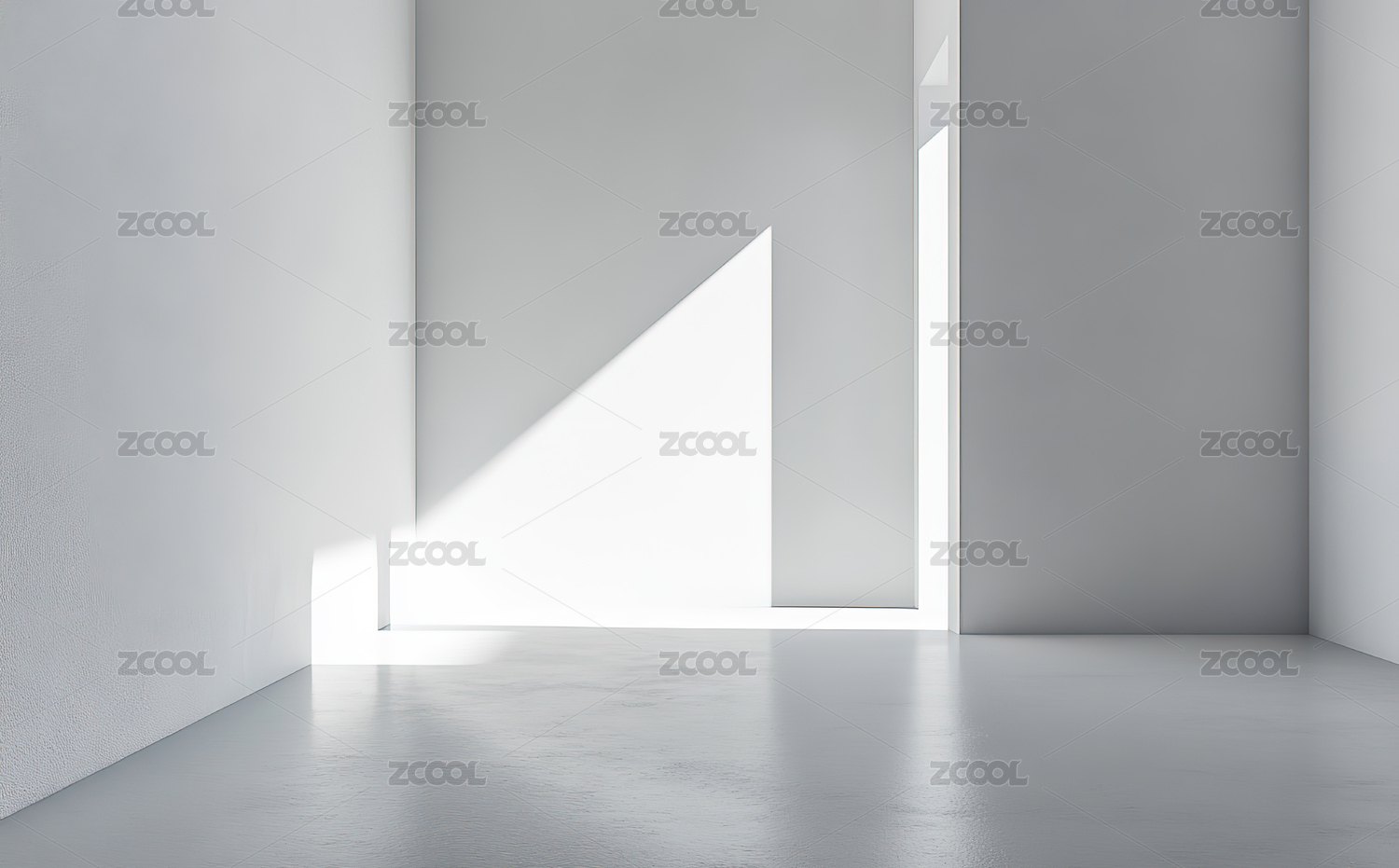 极简主义, 室内设计, 白色墙壁, 地板, 画框, 光影, 空间感
