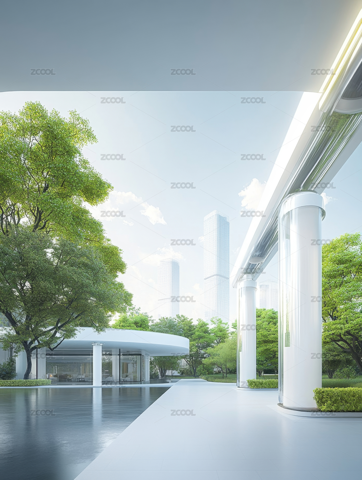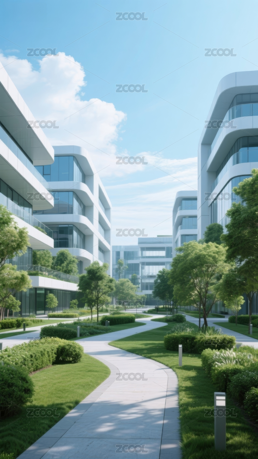 现代,建筑,住宅区,阳光,大道,树木,白色,花园,户外,清新