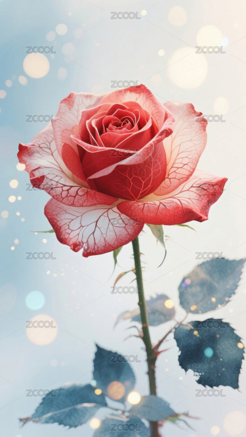 花瓣,蓝天,绿叶,花茎,玫瑰,地面,雪,光斑,心形,冰