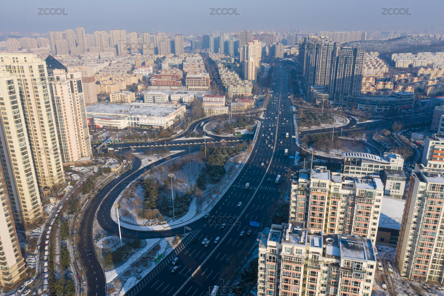 城市,立交,建筑群,雪后,冬季,航拍,俯瞰,全景,建筑,住宅区