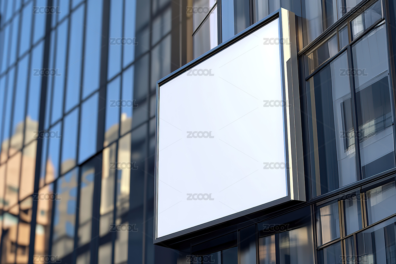 现代,建筑,玻璃,幕墙,方块,广告牌,白色,矩形,空置,照明