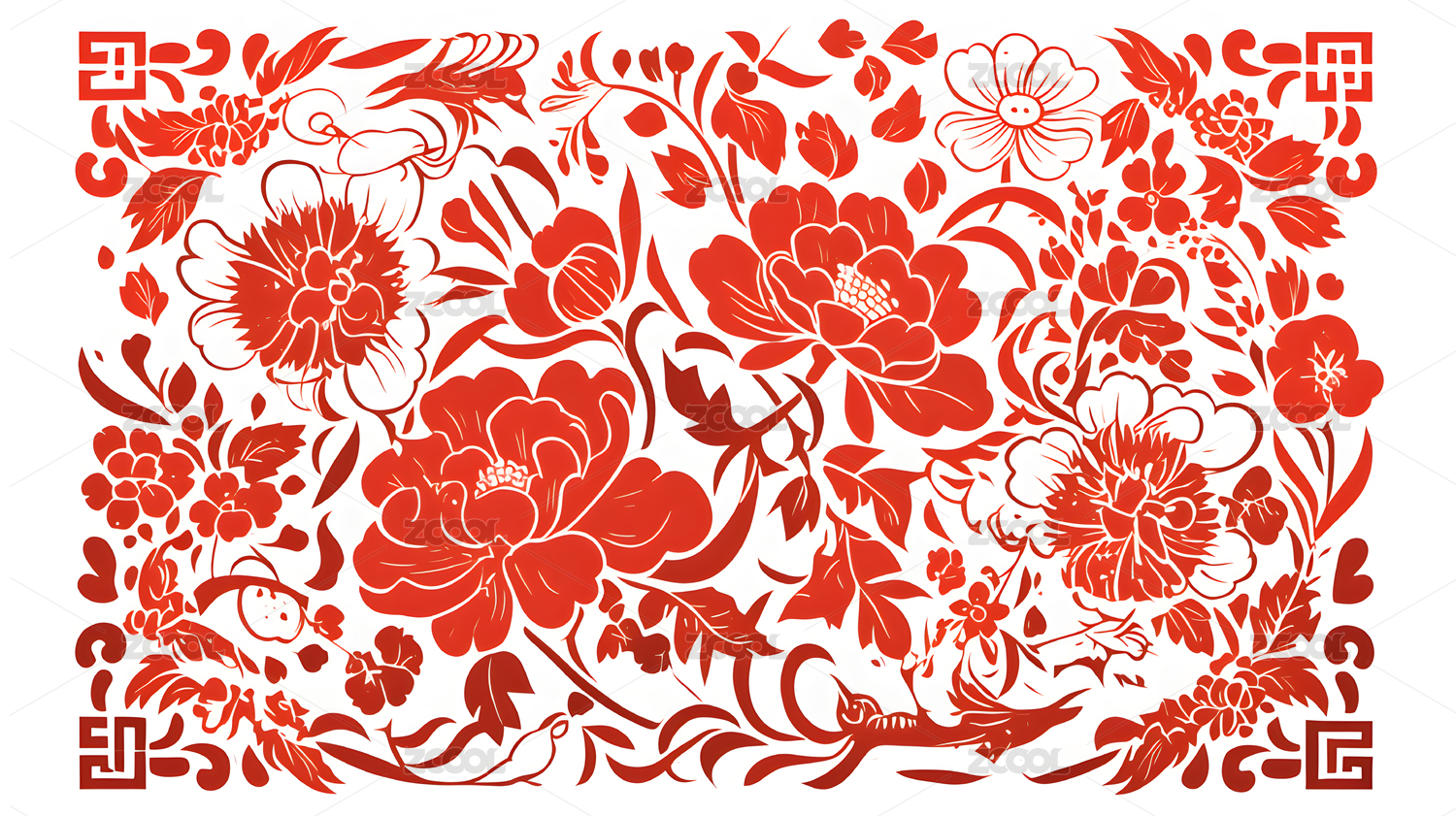 剪纸福娃带着红色丝带坐在鱼上新年年画元素