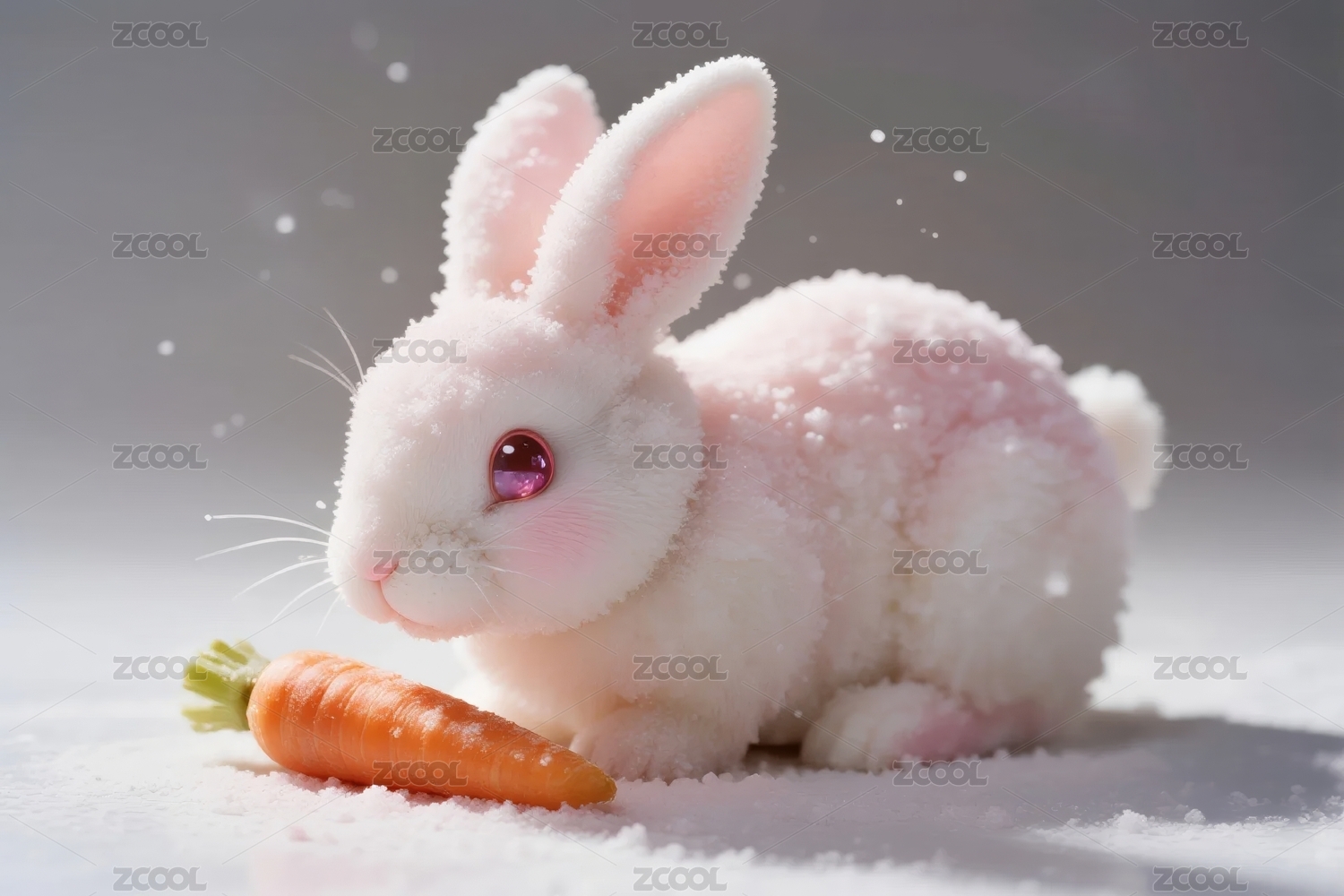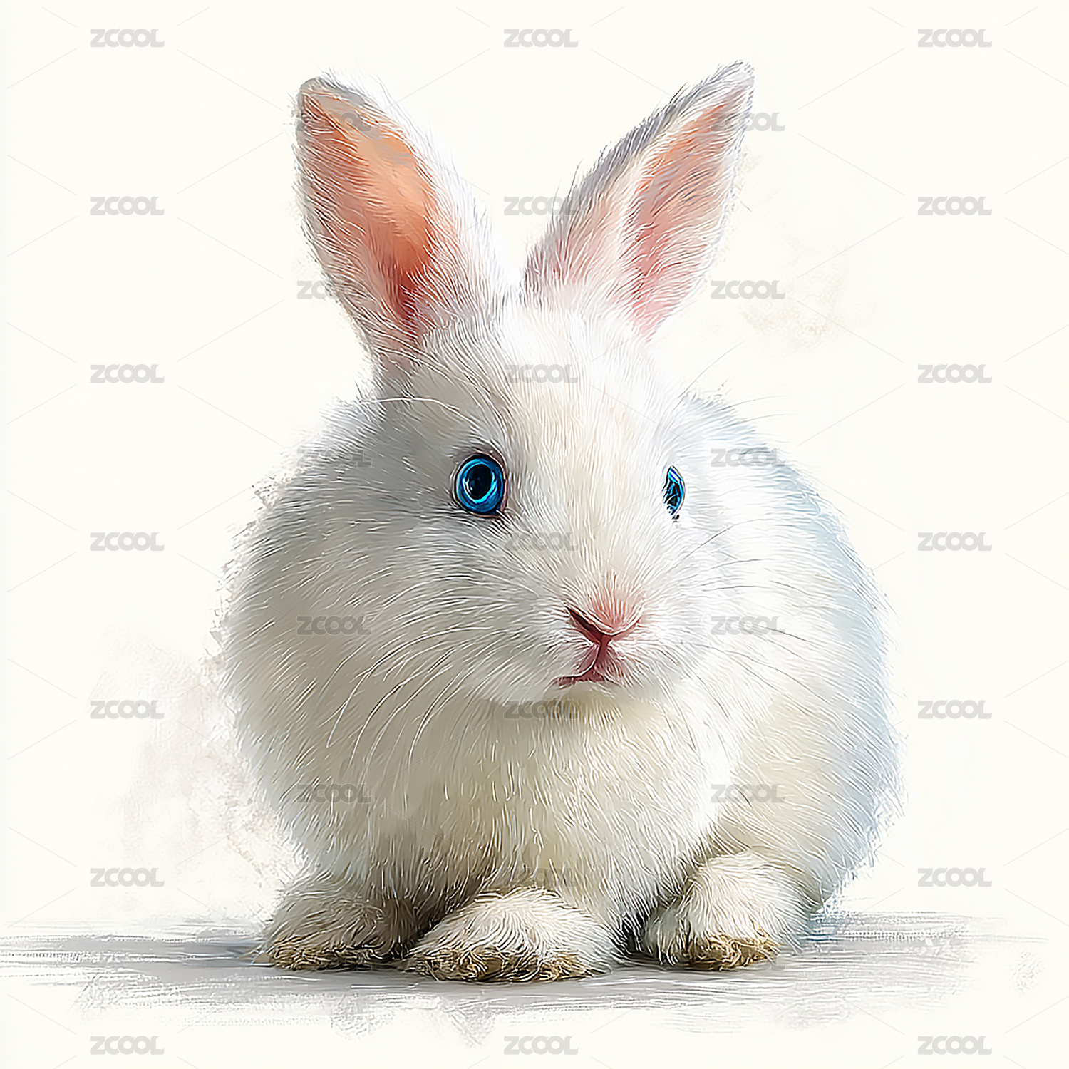 一只白兔鼻子和耳朵都是粉红色的高清图片