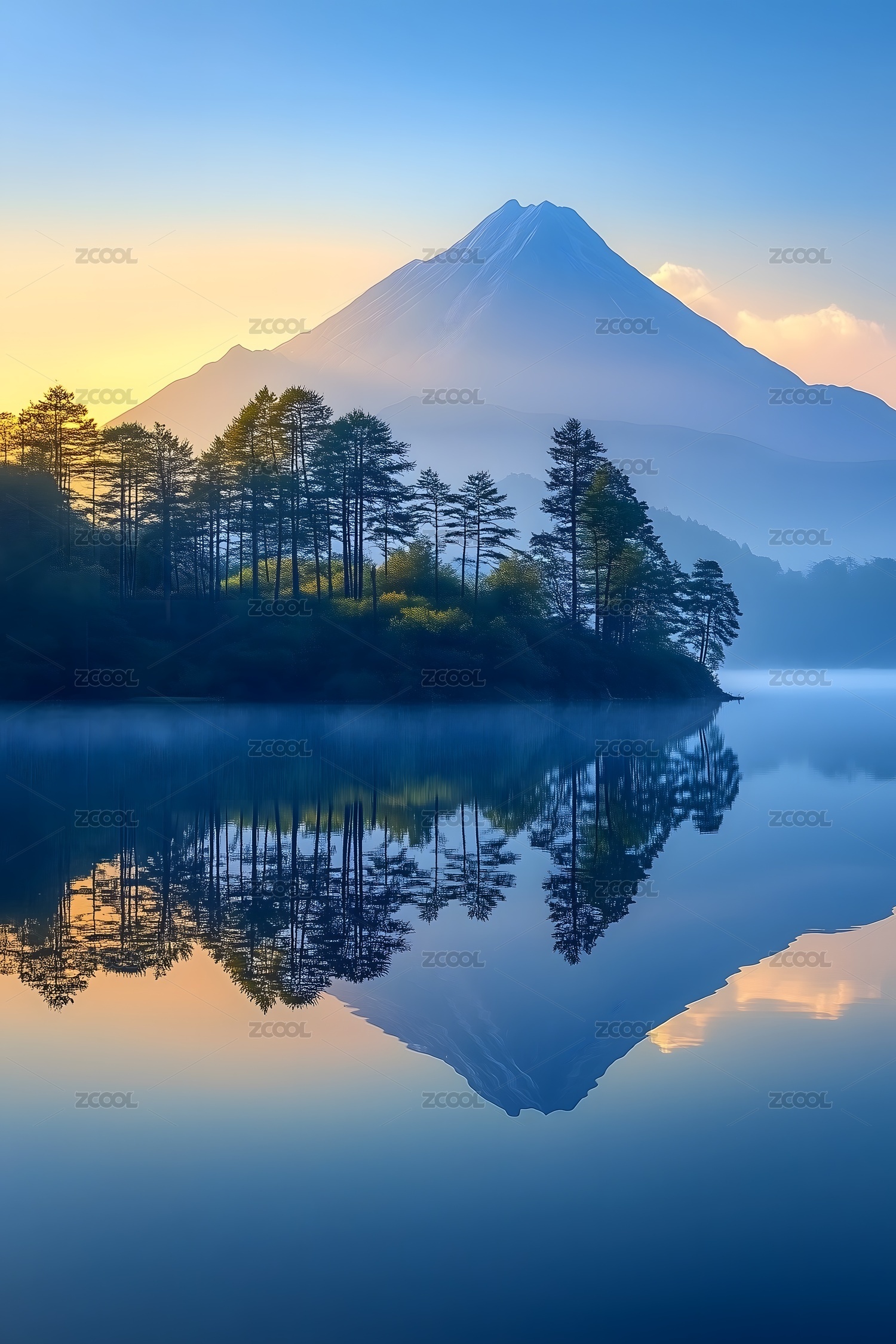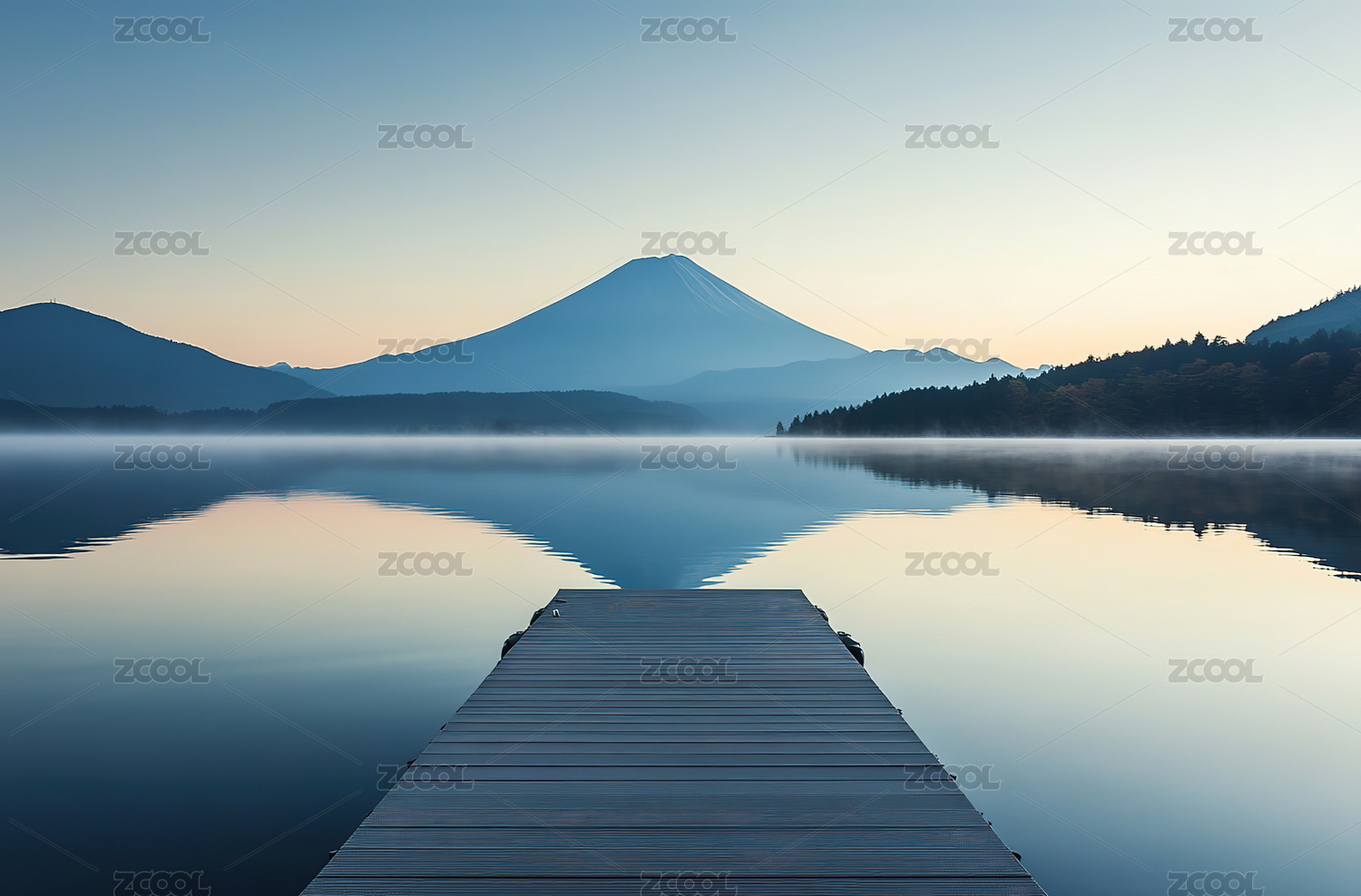 富士山倒影的宁静清晨