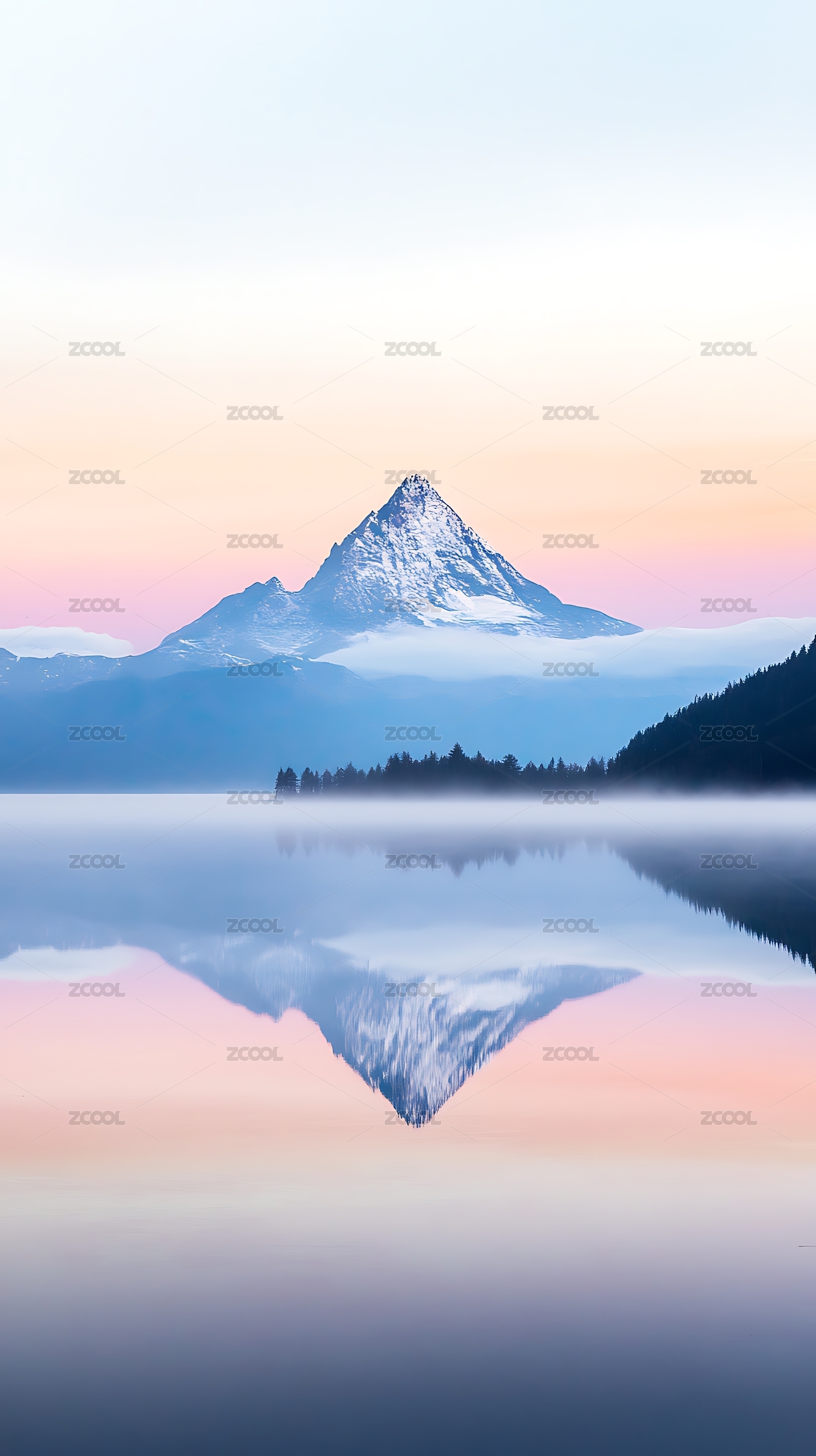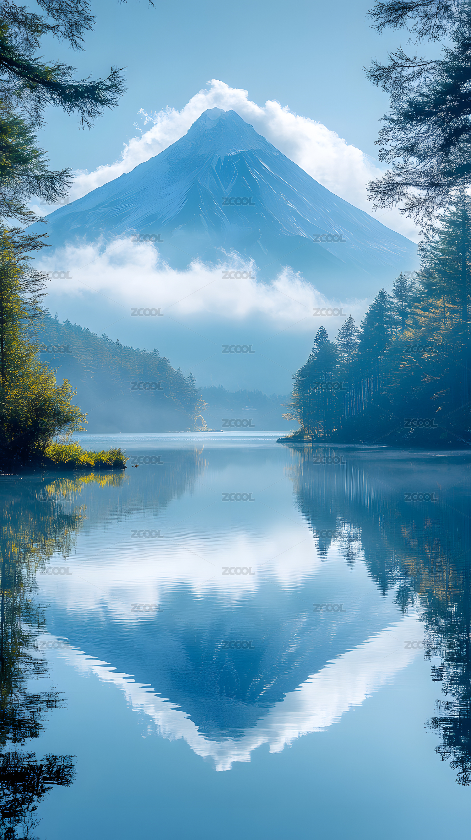 山峰湖泊倒影