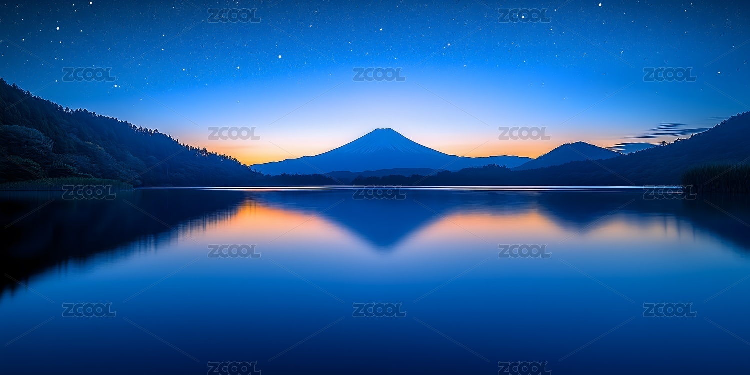 富士山倒影湖泊美景