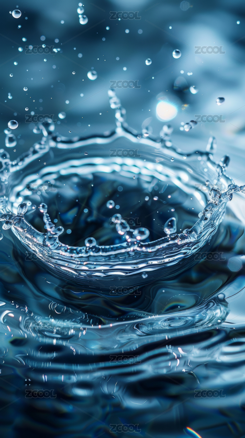 清澈, 质感, 液体, 背景,水花, 滴落, 光晕, 泡沫, 水滴, 蓝色