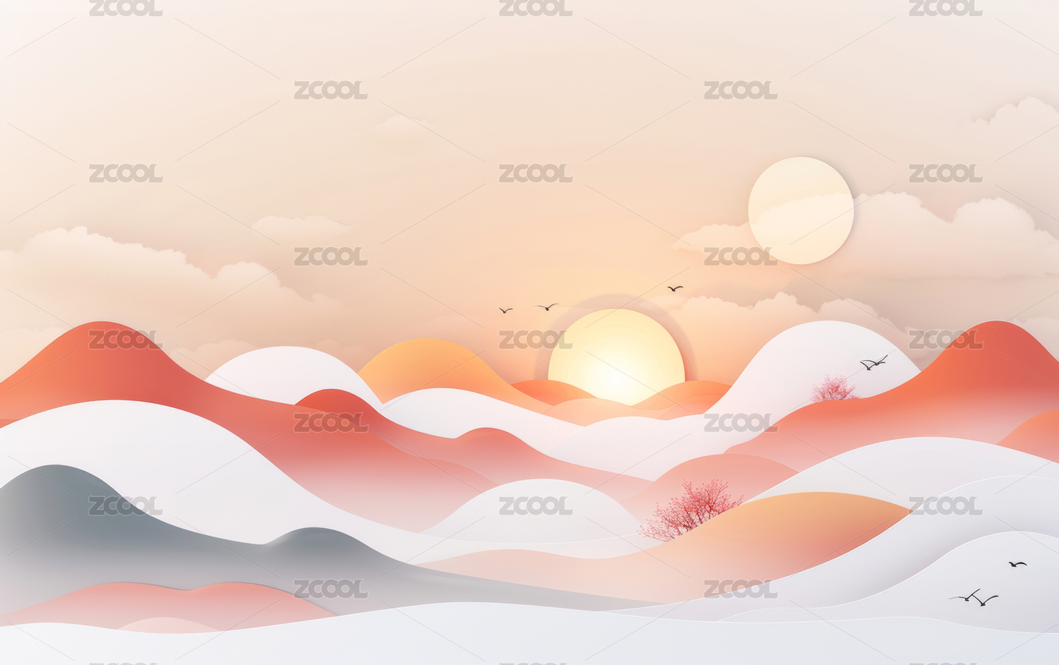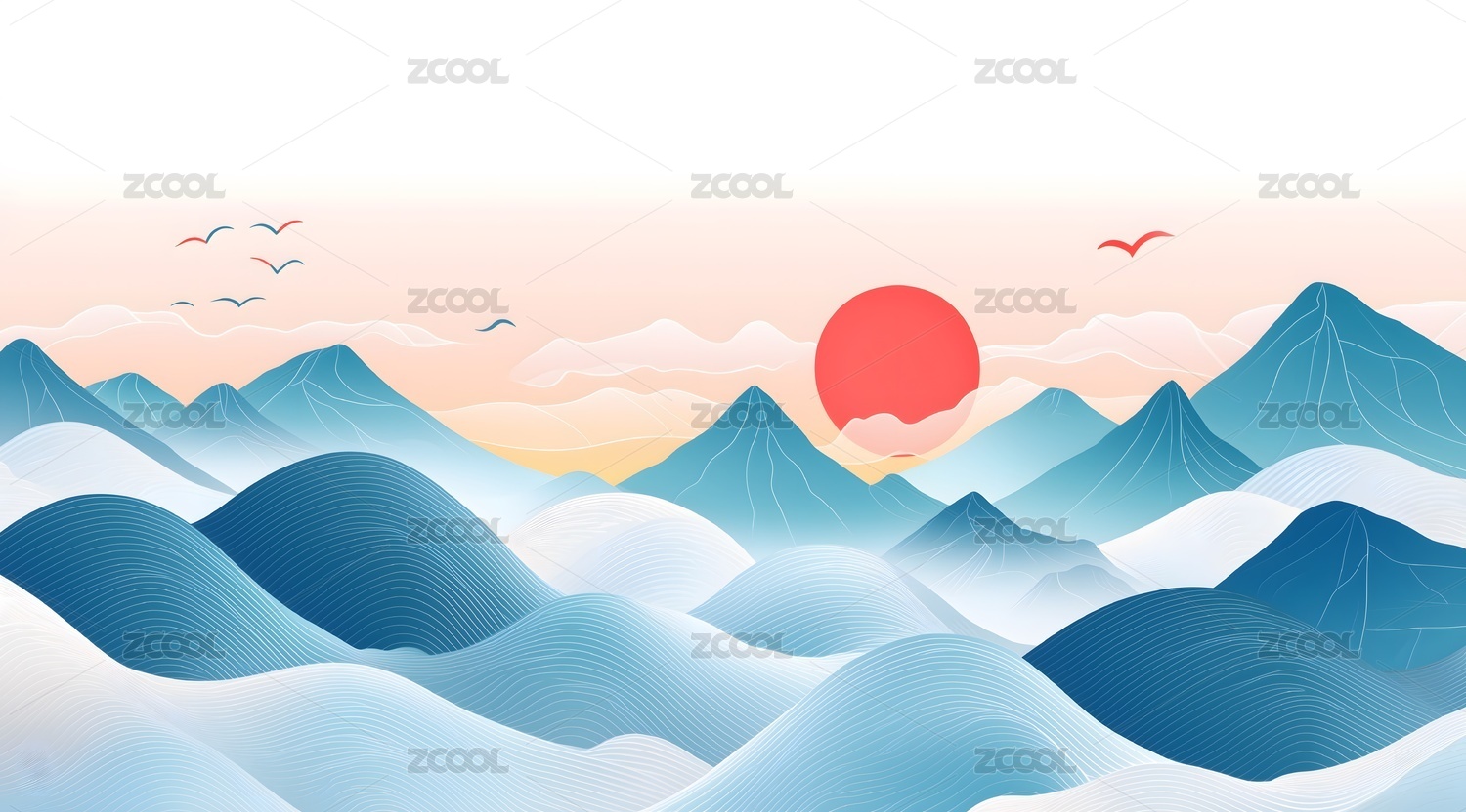 中国风古楼建筑传统国风古建筑国潮插画背景