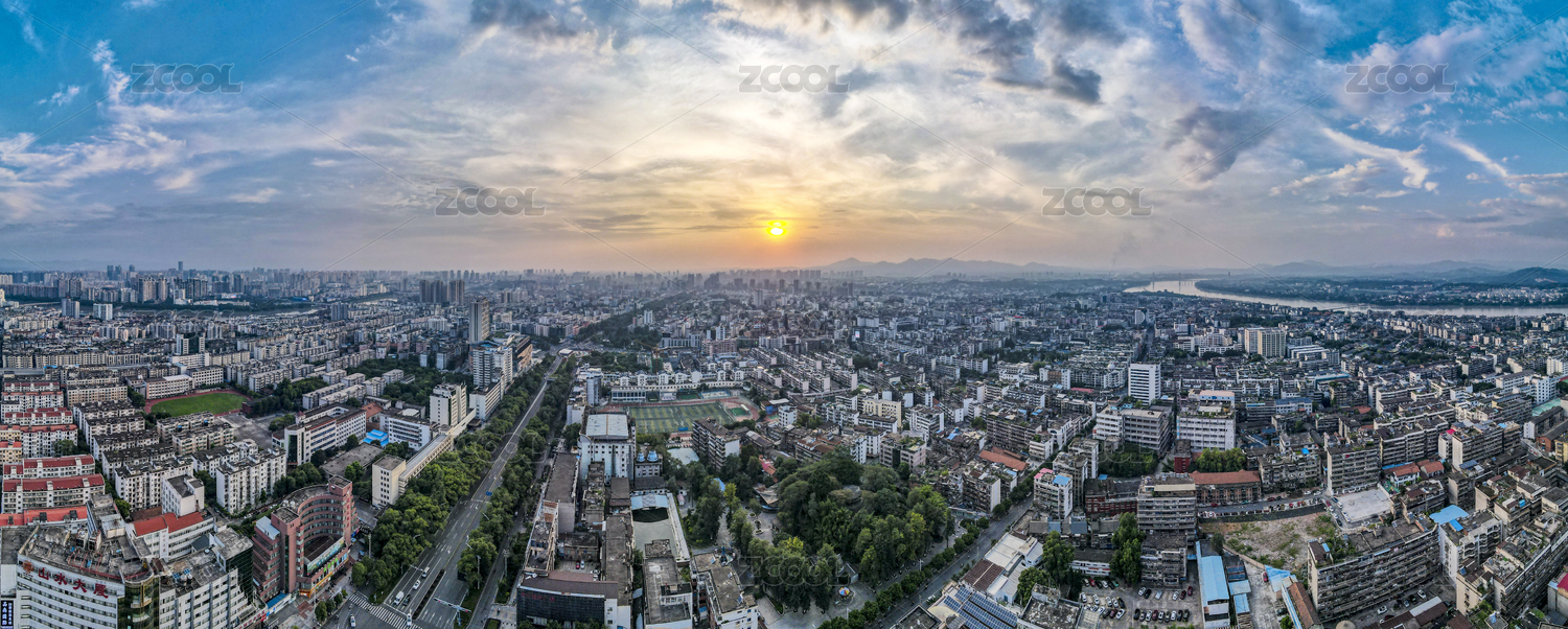 中国江西赣州城市日落晚霞夕阳全景图