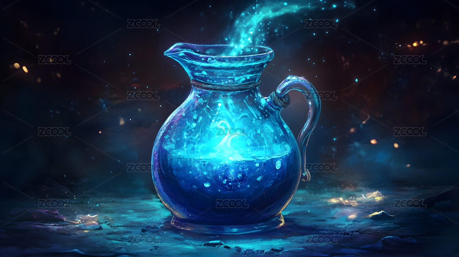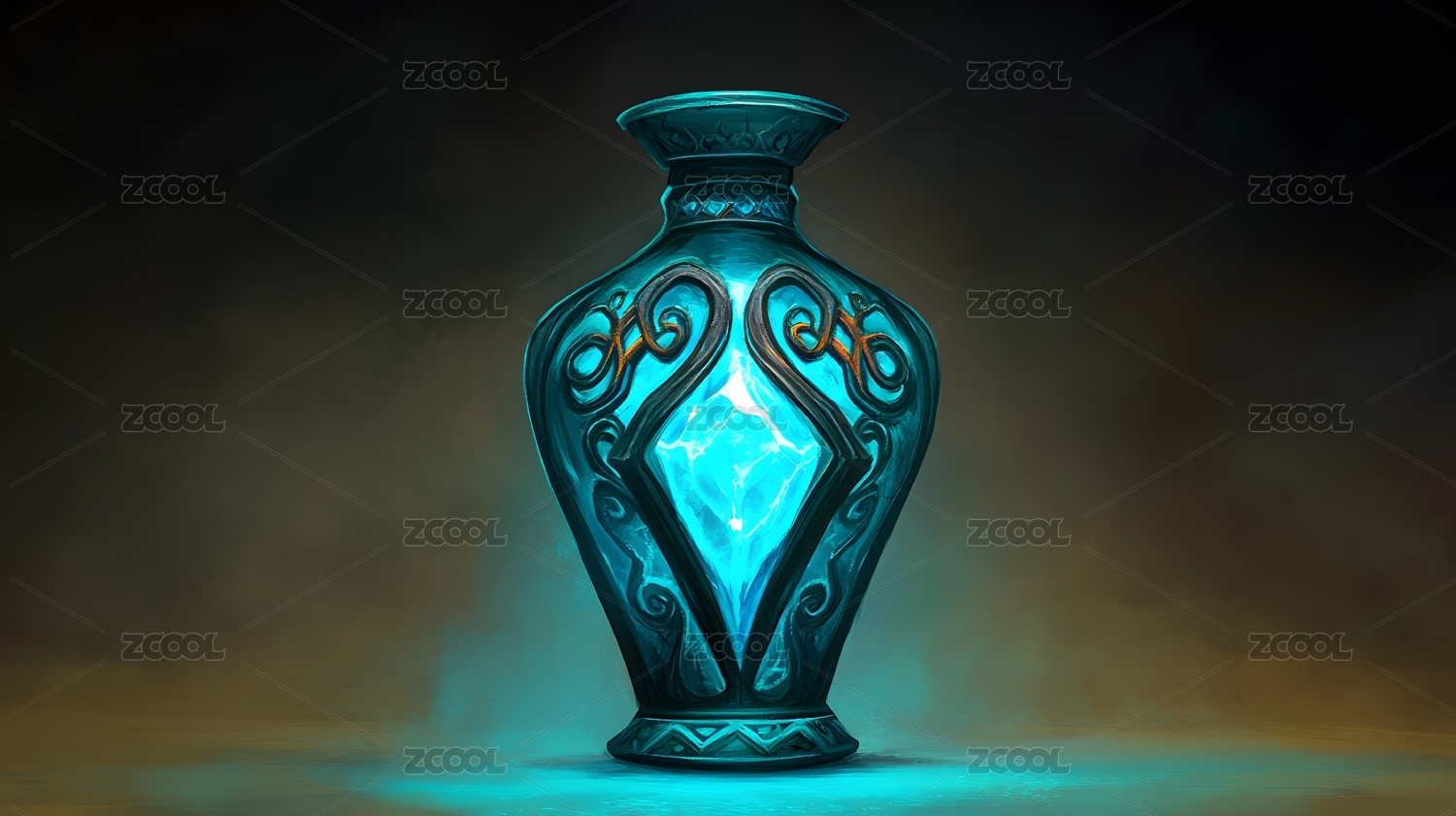 黑底抽象透明玻璃瓶中的魔法能量3D立体画