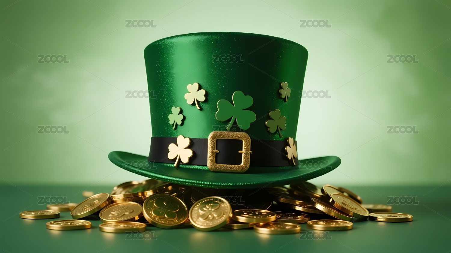 绿色礼帽与金币装饰场景