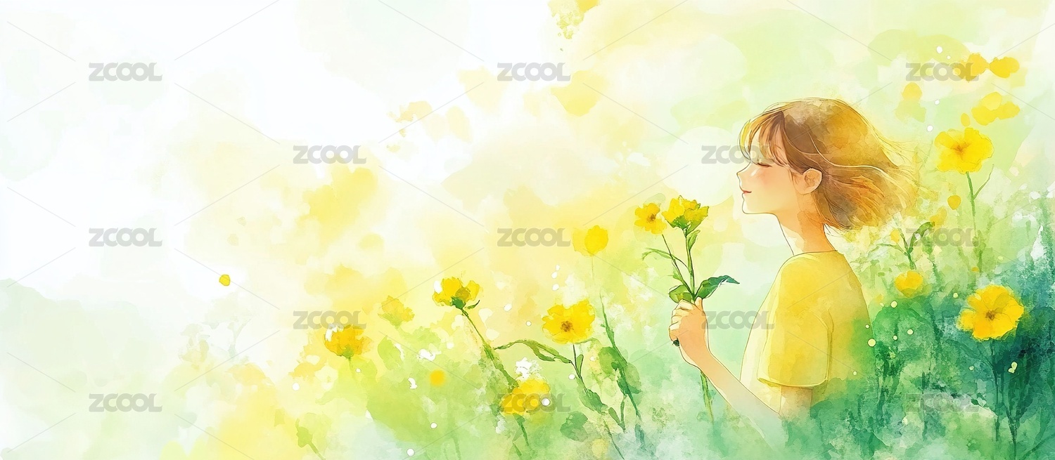 花野女孩水彩画