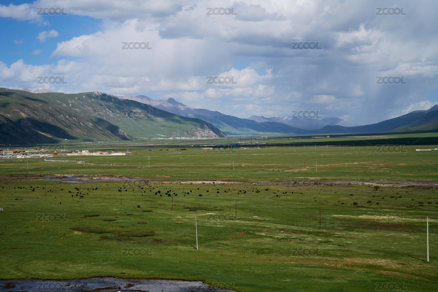 川西若尔盖大草原高山云雾缭绕绿色草地