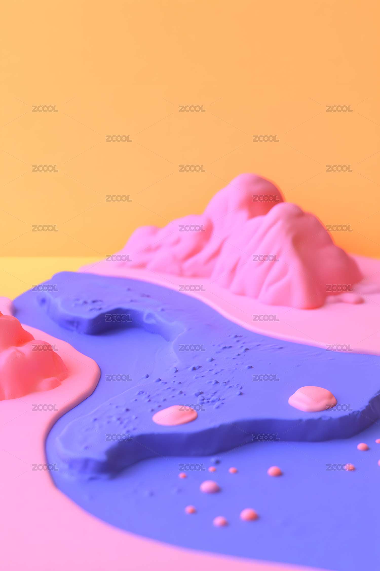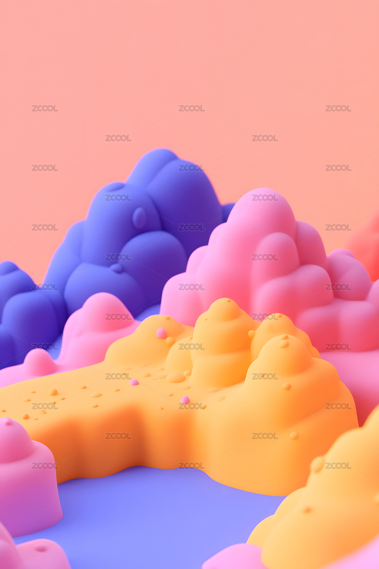 3d,立体,可爱,卡通,温柔,柔和,彩色,风景,山峰,景观
