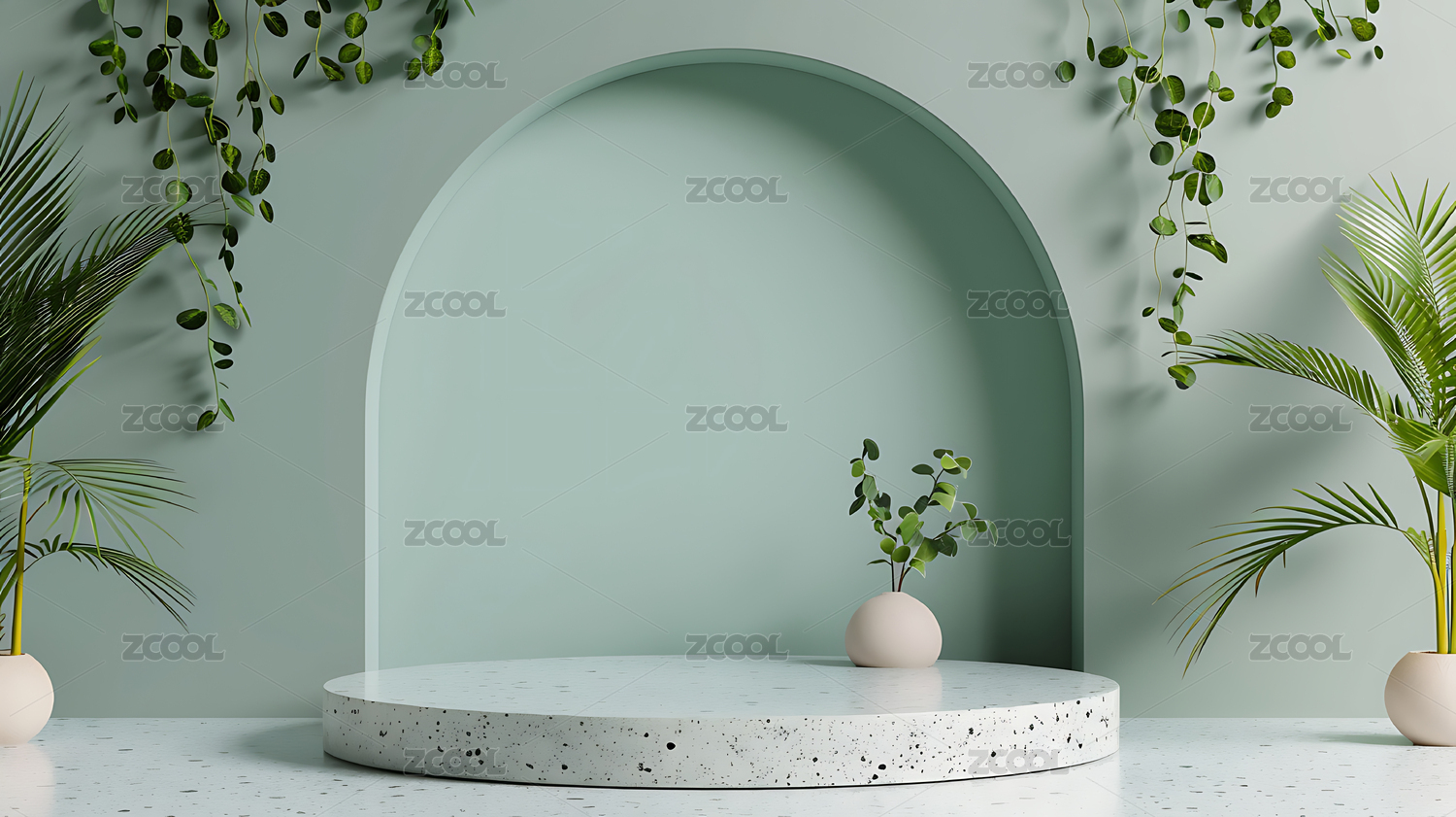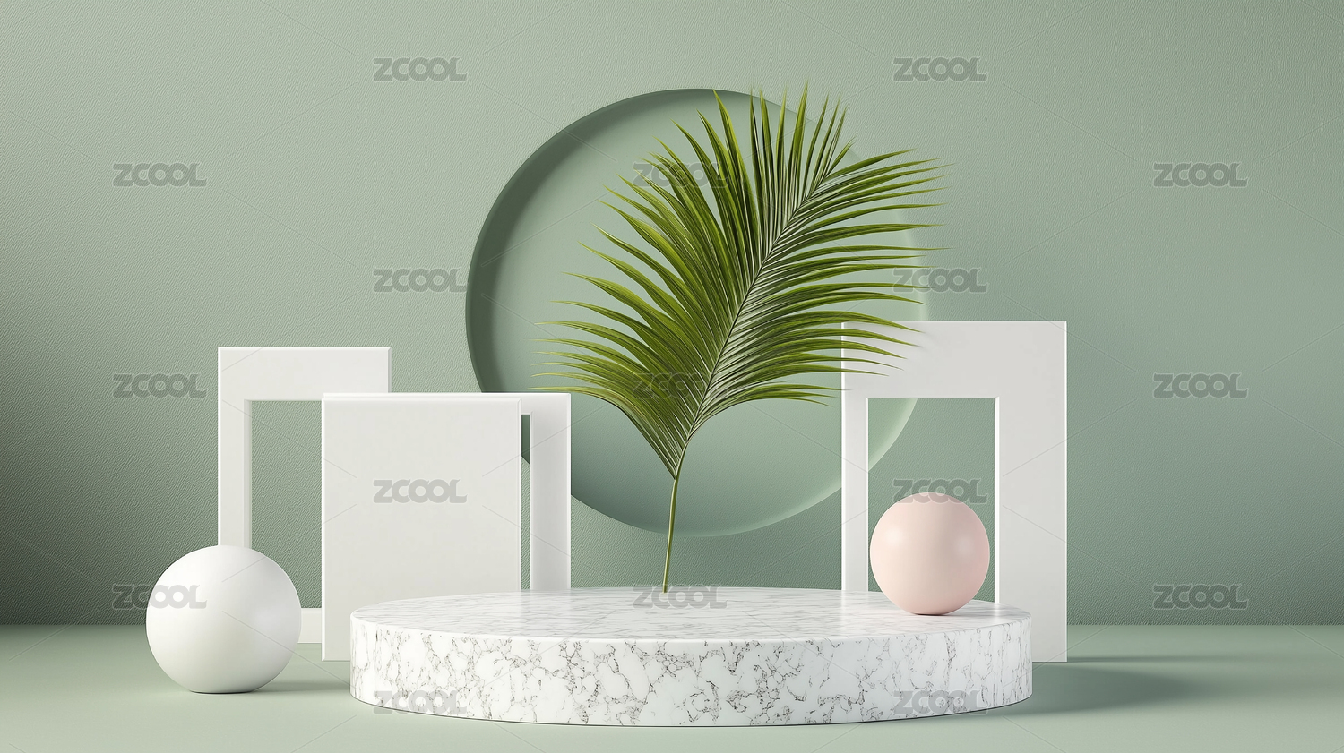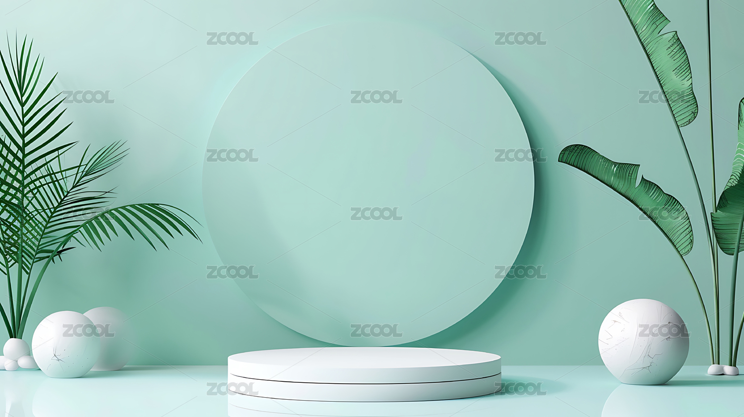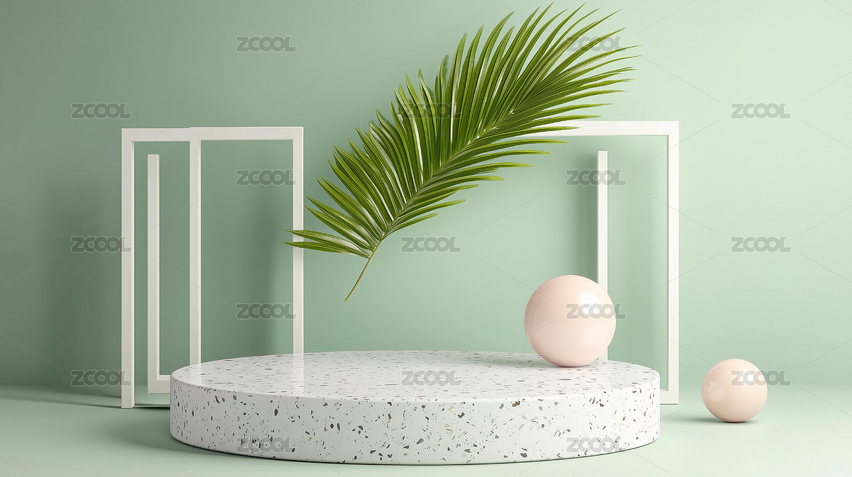 薄荷绿,几何,框架,球形,摆件,绿植,叶片,圆形,石台,薄荷