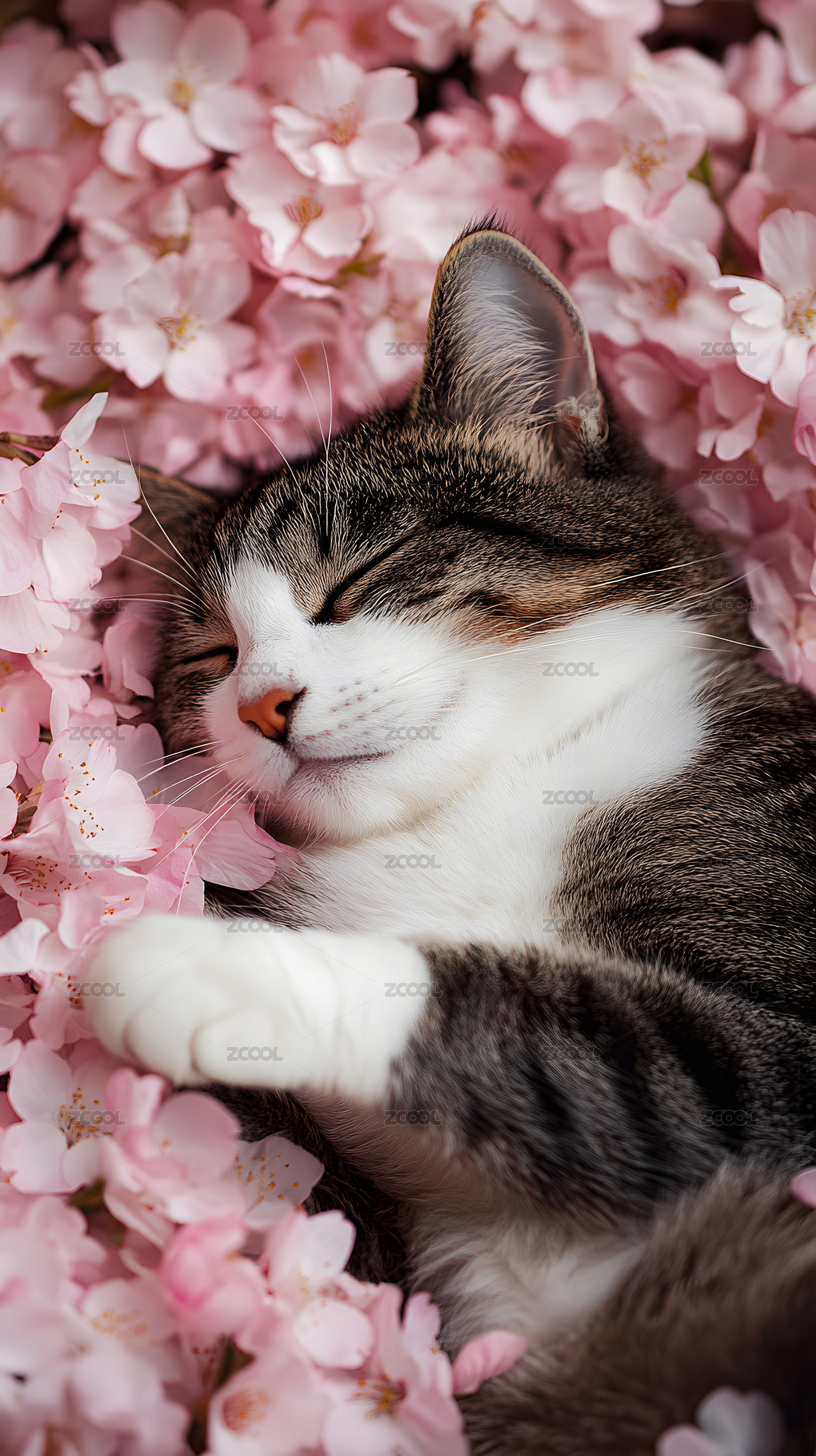 猫咪,花朵,自然,可爱,优雅,毛发,粉色,棕色,白色,动物
