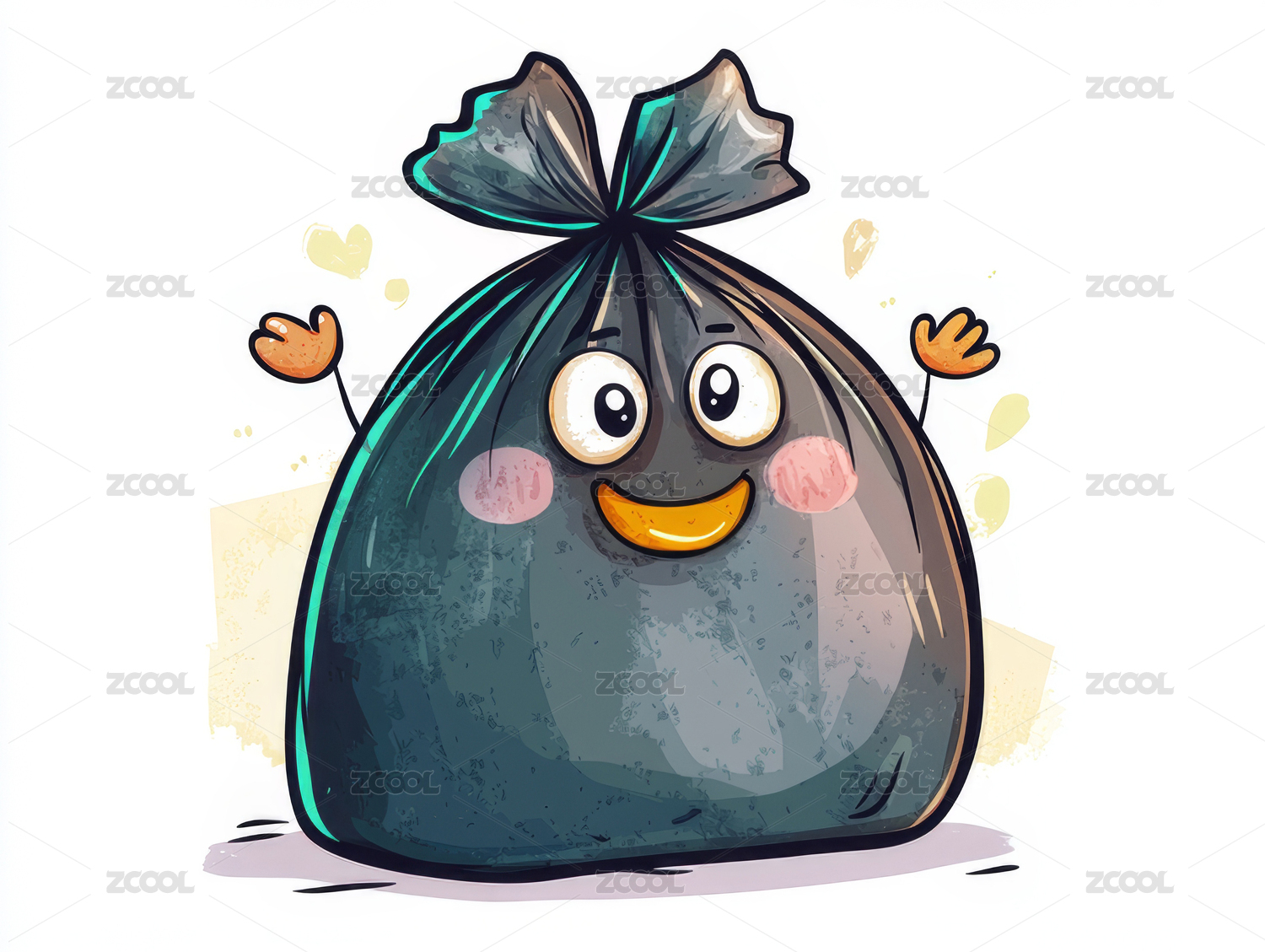 卡通,垃圾袋,可爱,表情,红色蝴蝶结,微笑,卡哇伊,清洁