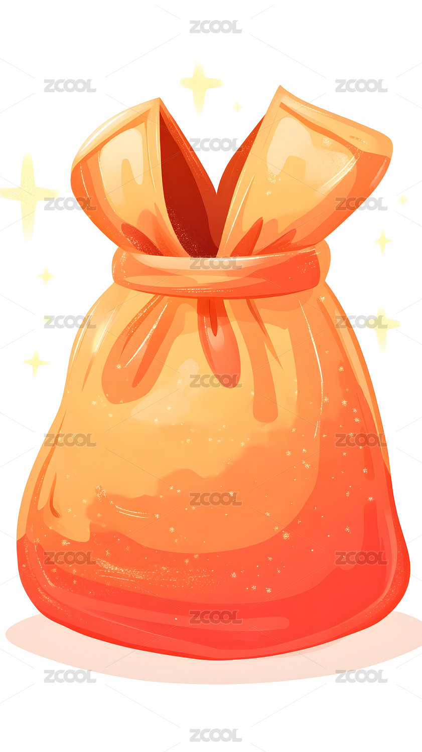 卡通矢量中国风金币钱袋福袋红包手绘插画