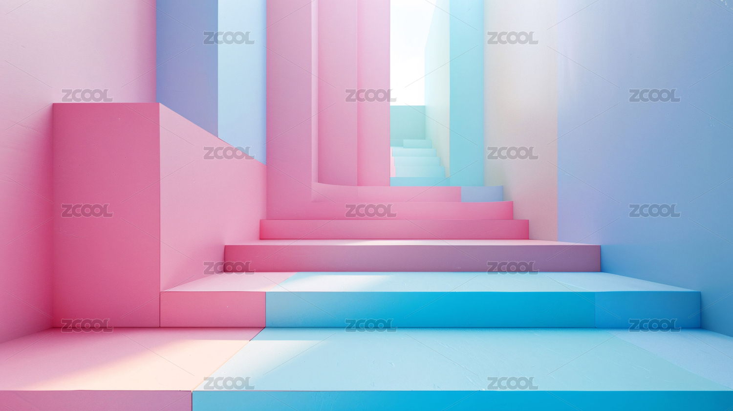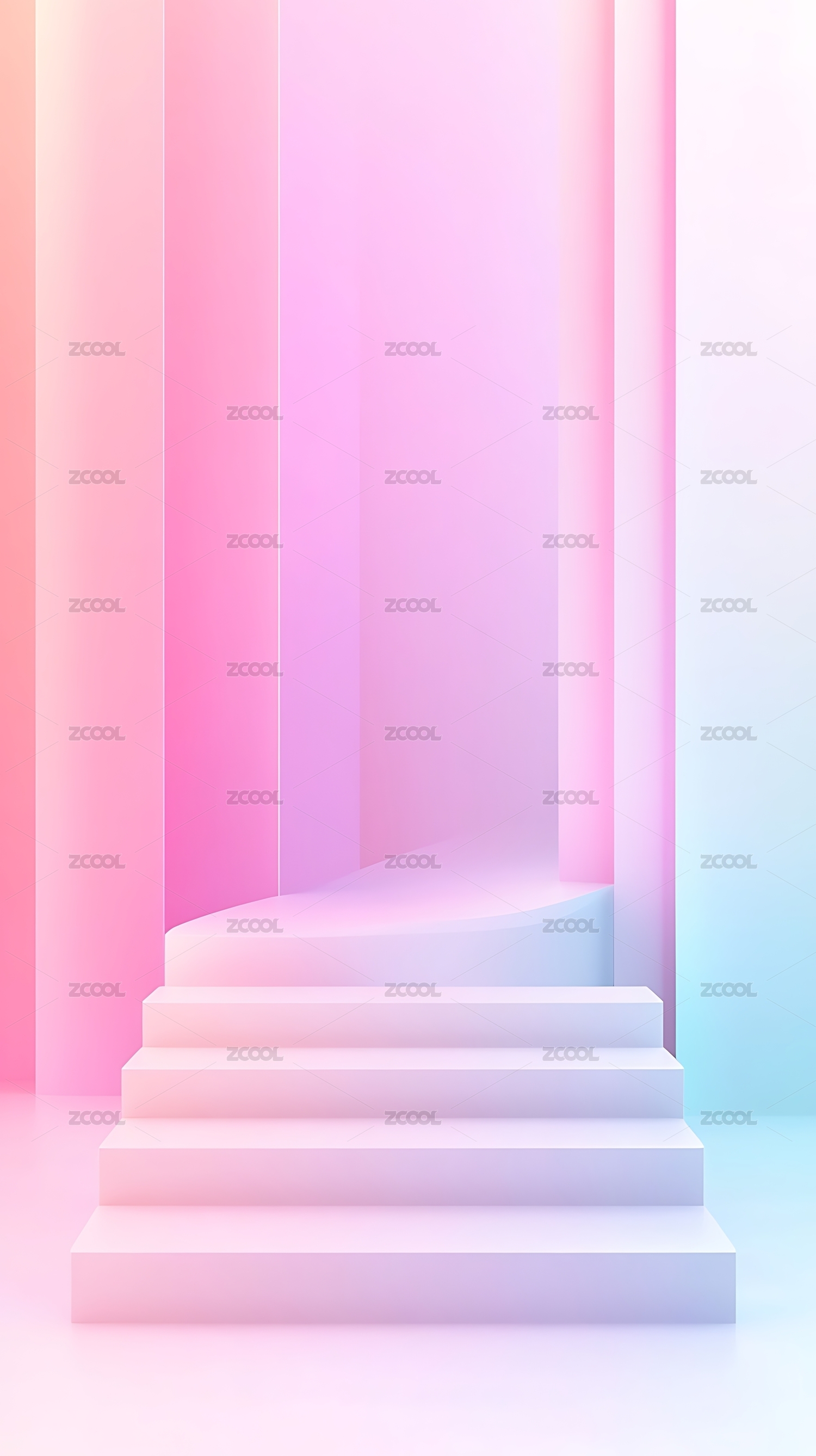 梦幻粉蓝渐变色展台底座电商3D效果图