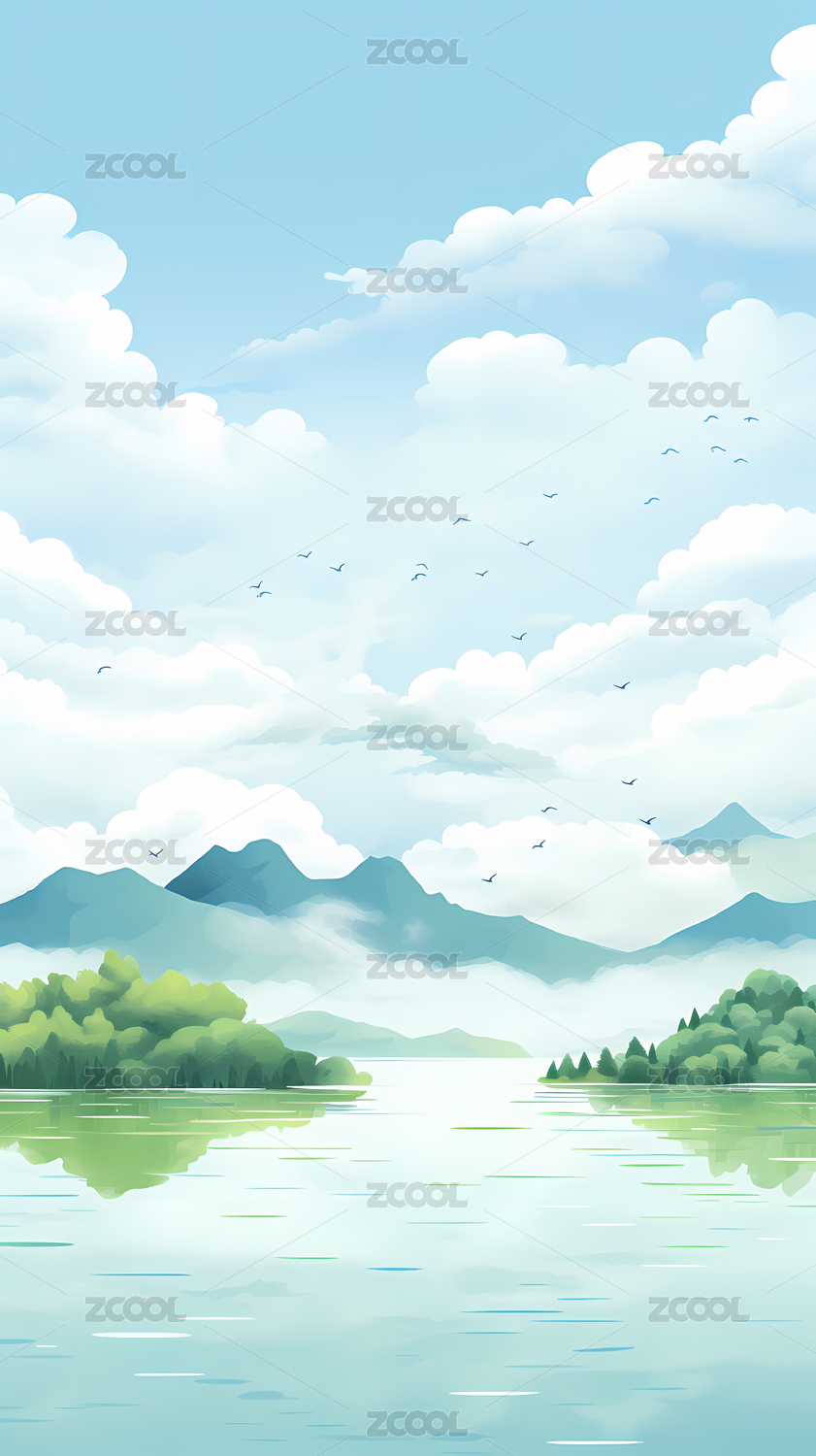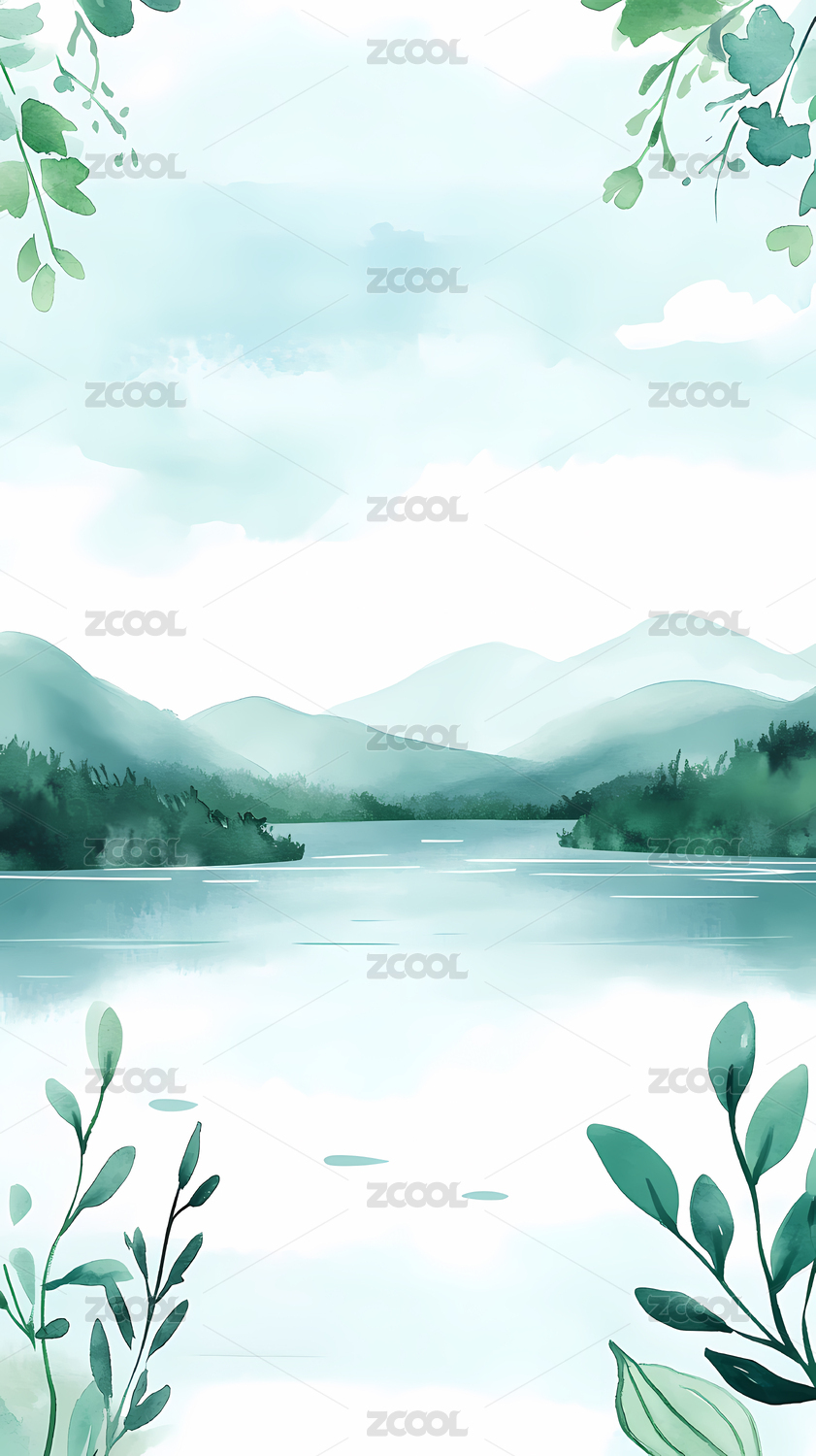 艺术,淡雅,清新,背景,插画,自然,绿色,壁纸,风光,山脉