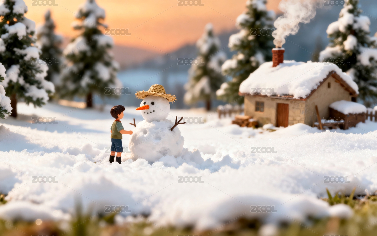 雪人村庄冬日童话