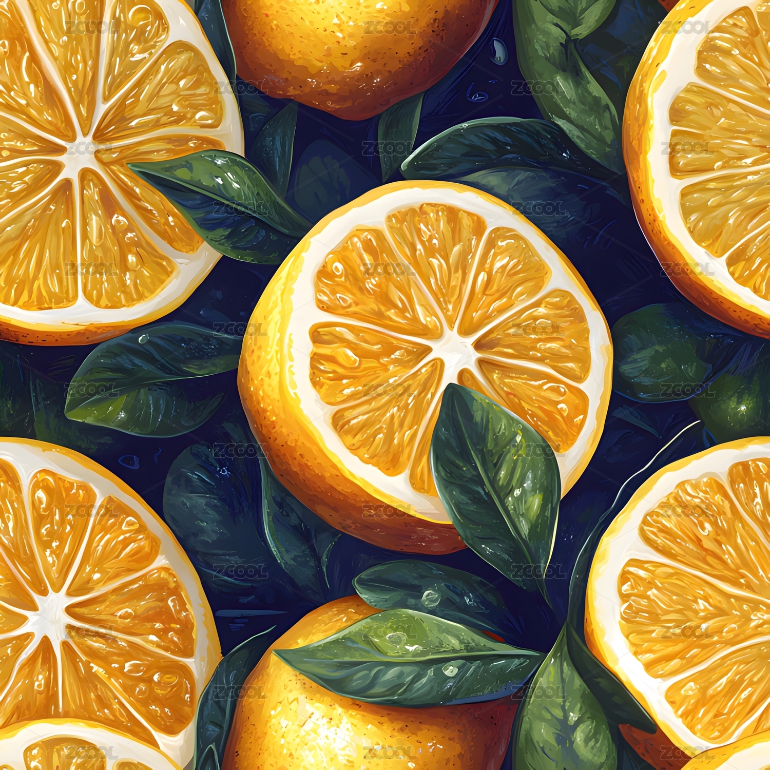 水彩风橙子切片无缝背景