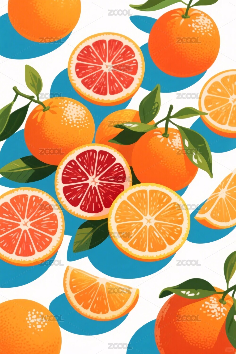 多彩柑橘水果插画