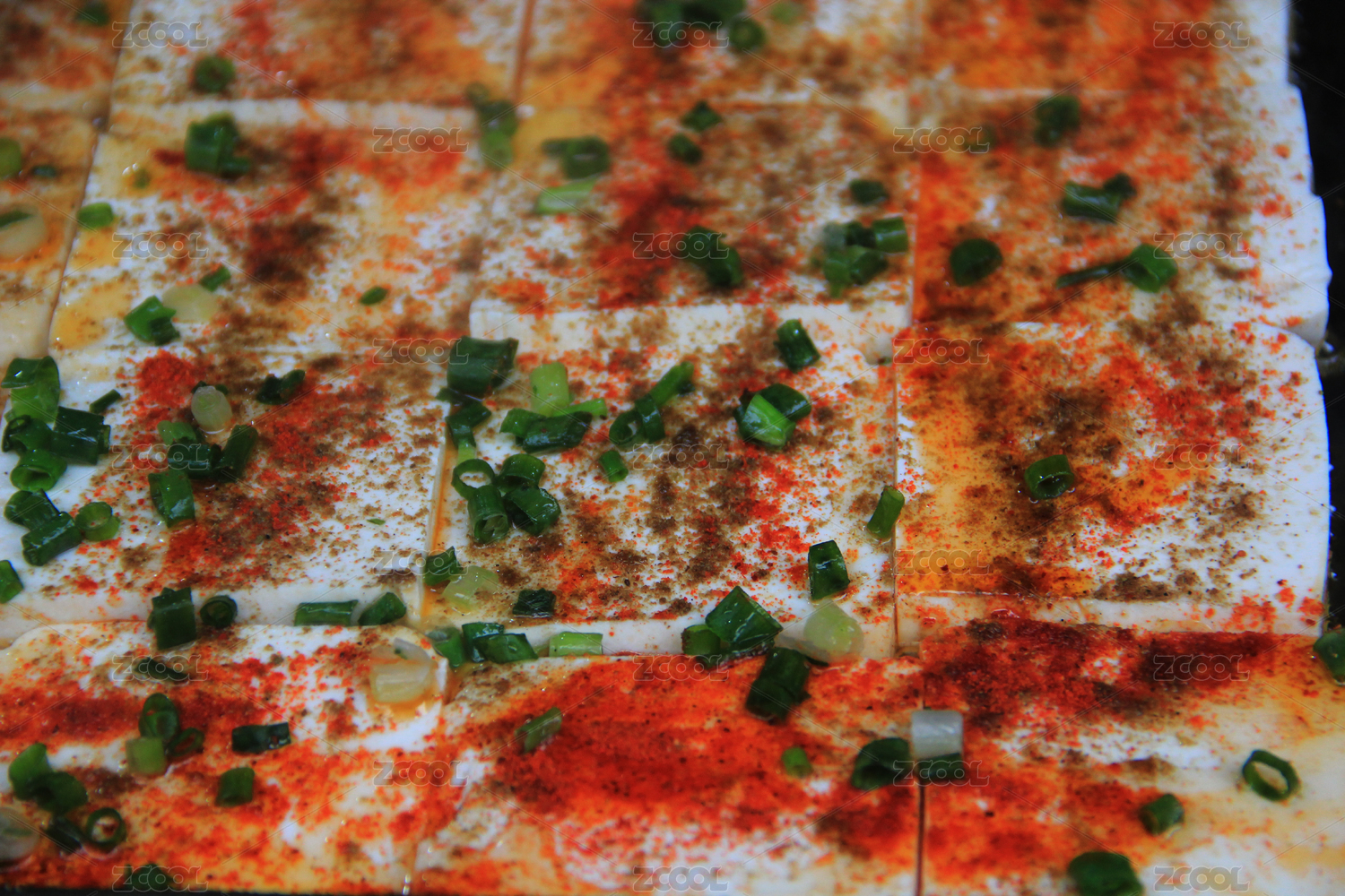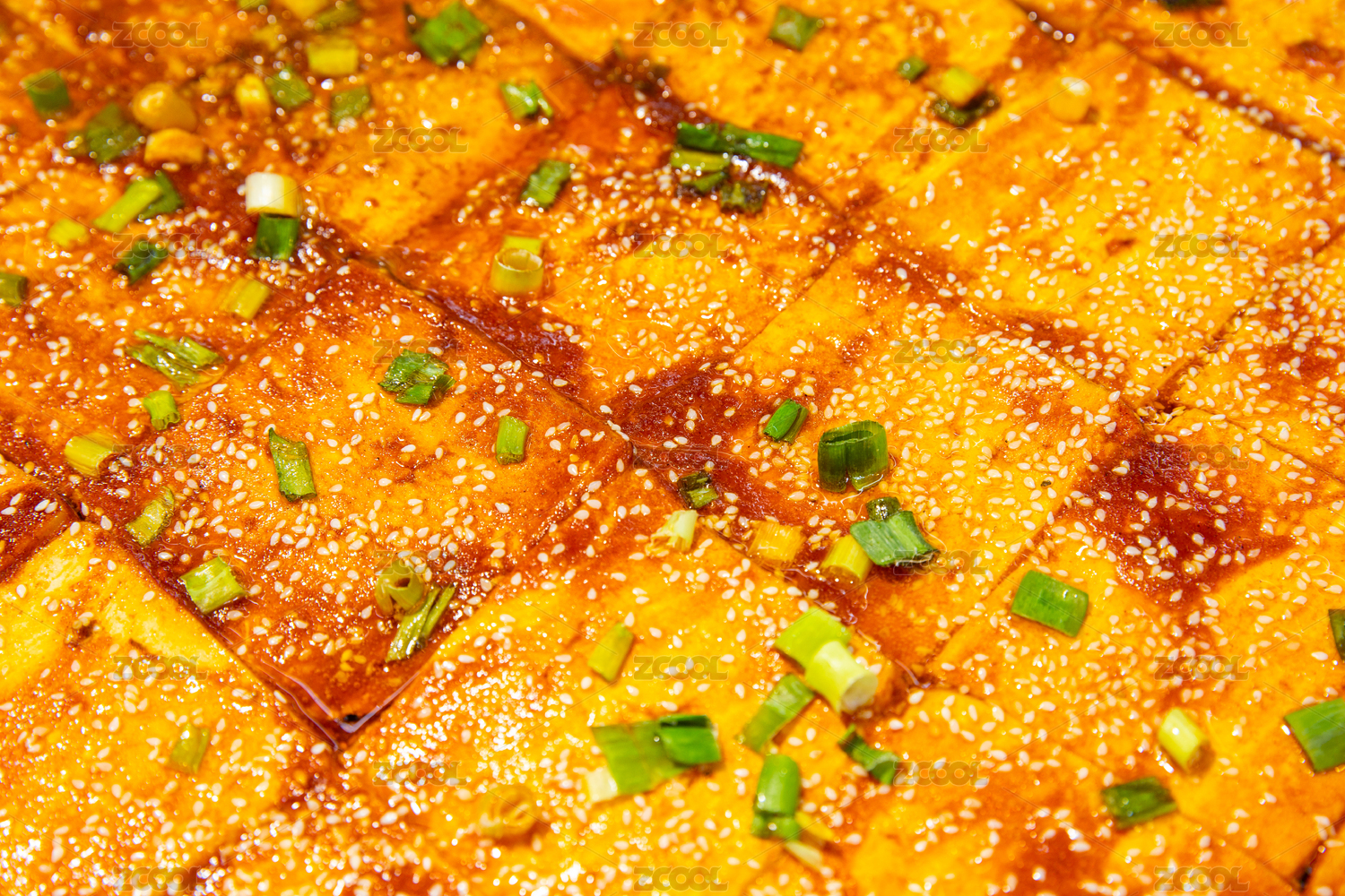 中国小吃铁板煎豆腐特写