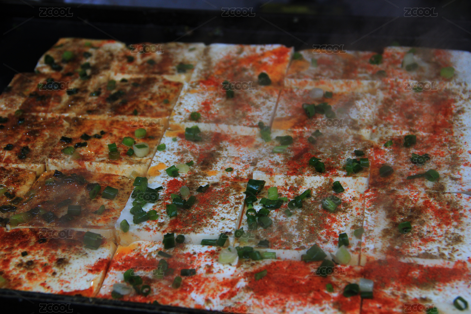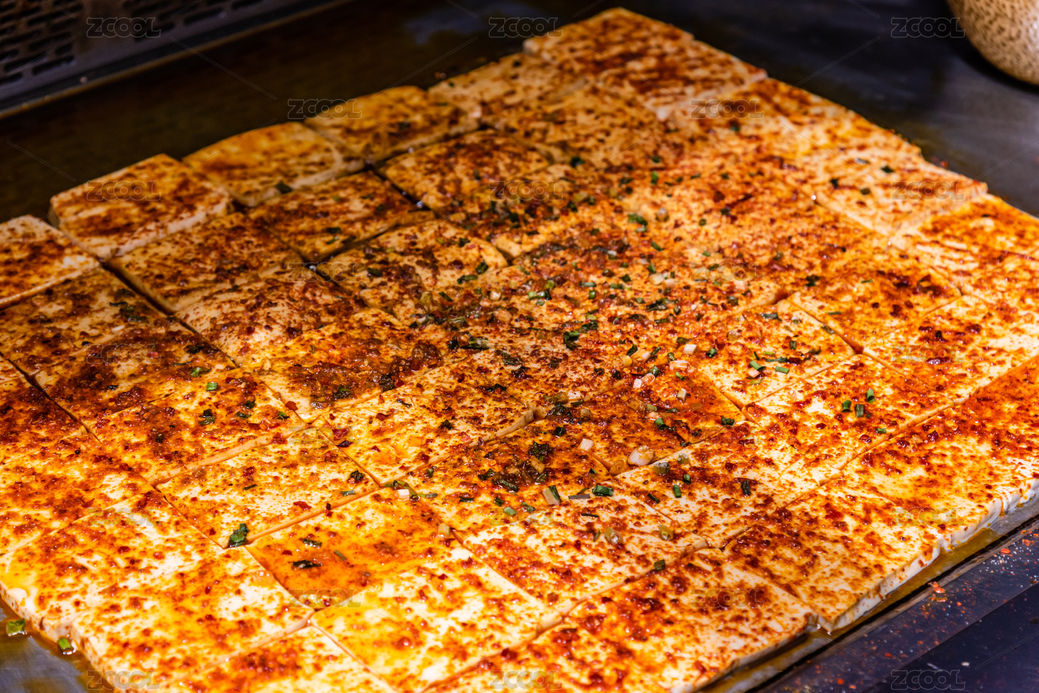 铁板上铺满的烤豆腐