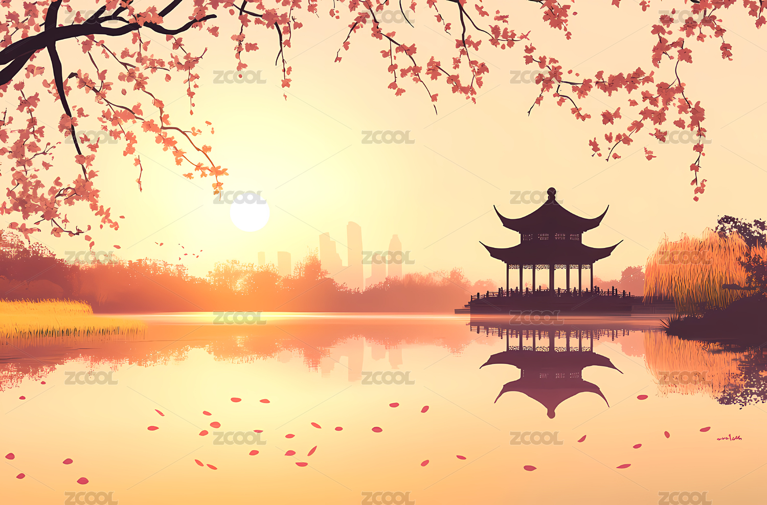 阳光,生态,黄昏,和谐,自然,湖泊,倒影,清新,美丽,宁静