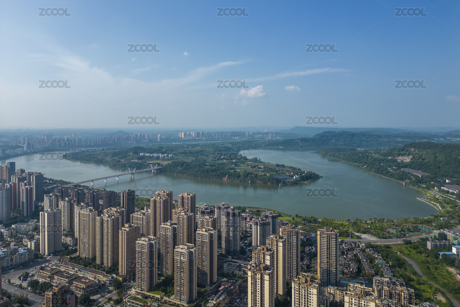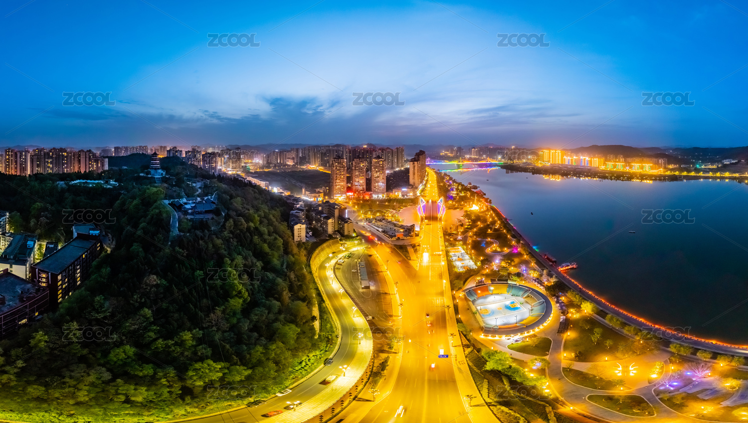 重庆,合川,全景,接片,夜景,俯拍,蓝色,大桥,环绕,江水环绕