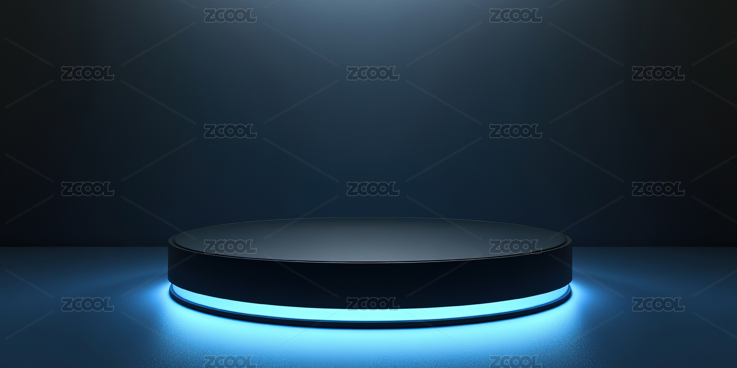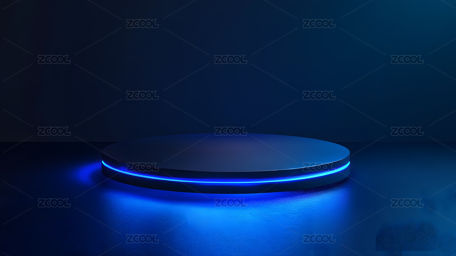 圆形,平台,蓝光,光环,金属,底座,光影,冷调,背景,地面