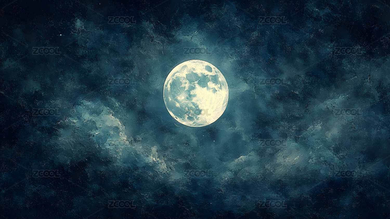 月亮高清背景唯美梦幻插图海面满月壁纸