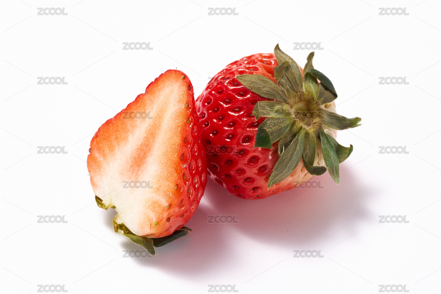 完整的草莓与切开的草莓对比展示